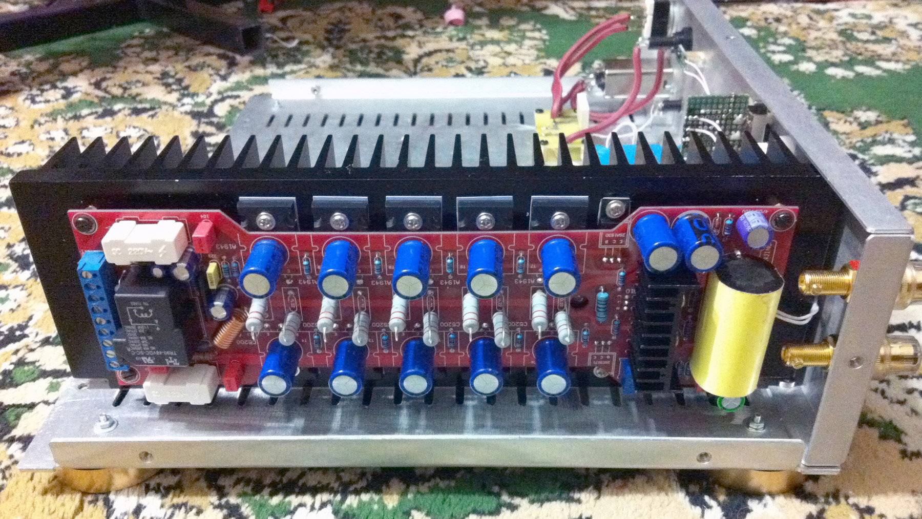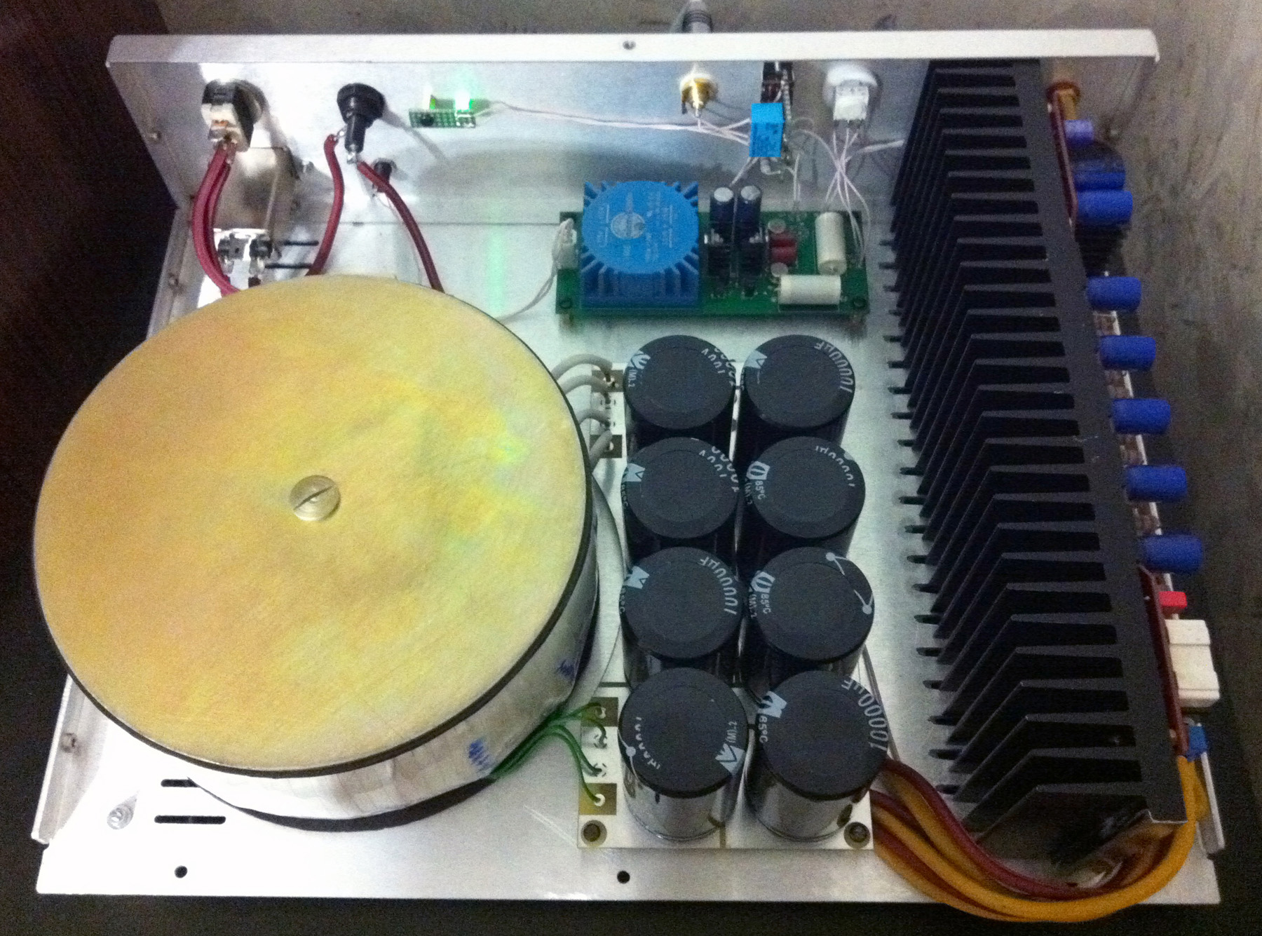 А пока вот только усилок для сабвуфера закончил, заточенный под 18" JBL. 350вт*8ом и 600вт*4ом. Не совсем собран правда пока.