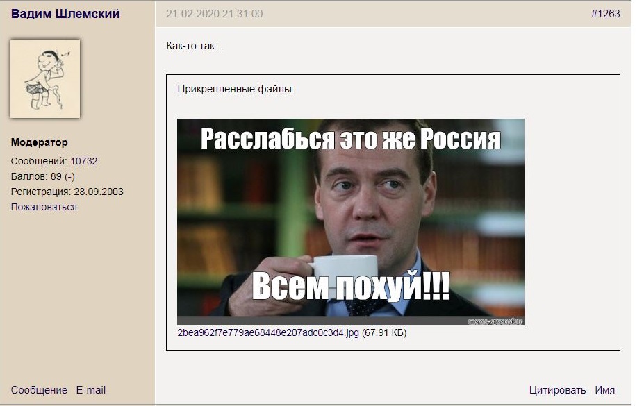 - Пока не воспользовался интернетом, не знал, что на свете столько идиотов. © Ст. Лем Аргументы (словеса) - ничто, факты, в виде реального звучания - всё. |