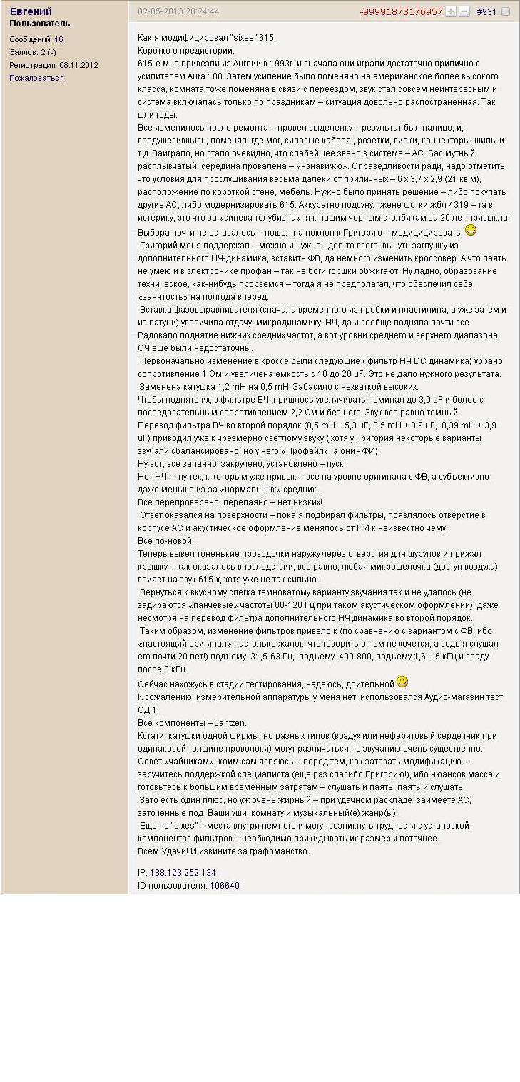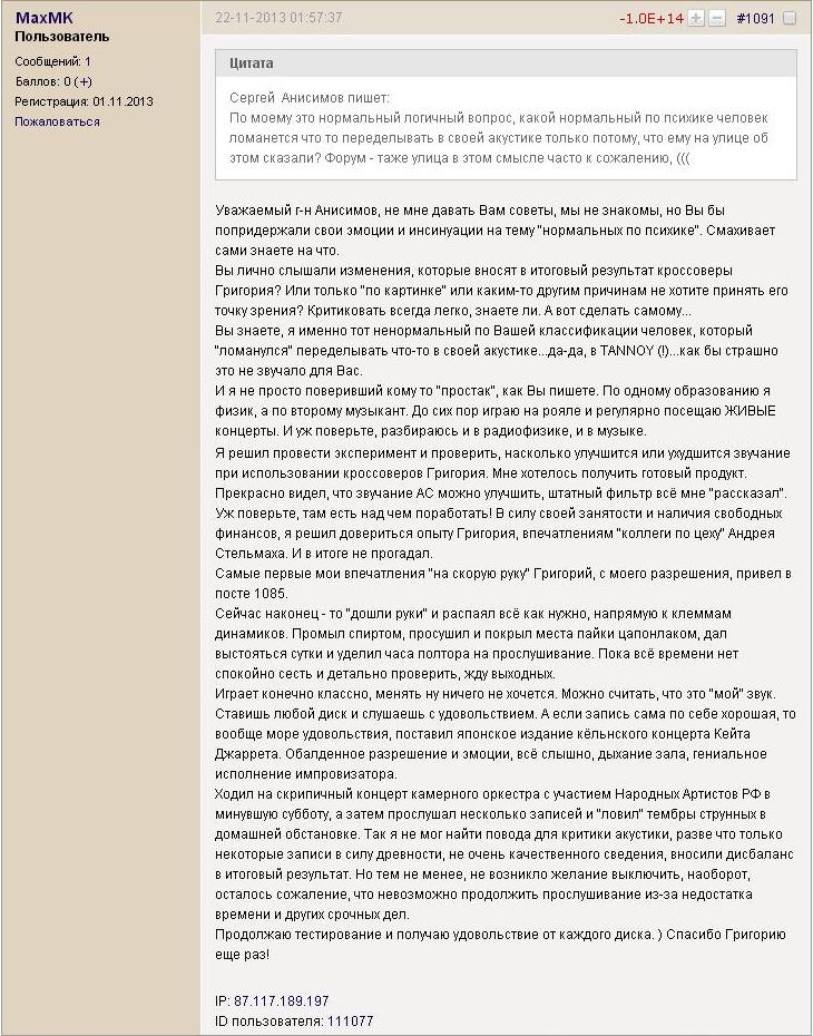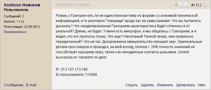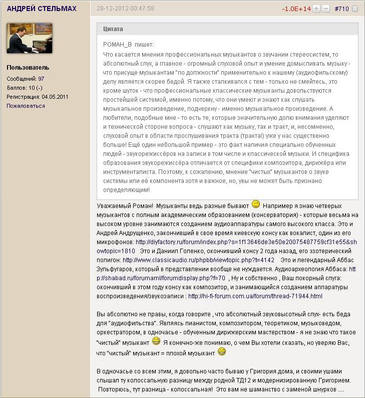 » это точно - омерзительно, когда скульптор с апломбом вторгается в сферу аудио не имея ни опыта обращения с качественной техникой, ни профильных знаний, ни нужного оборудования...» "самоуверенность дилетанта - предмет зависти профессионала"
