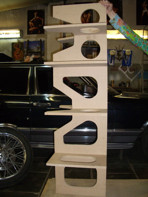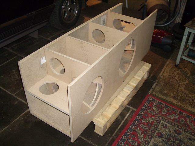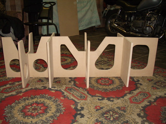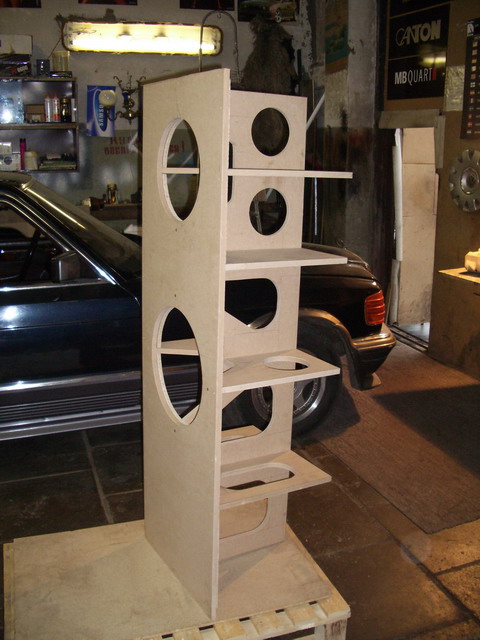 Когда привезли листы МДФ, я был в шоке.Если мне не изменяет память размер 2800х2070 при толщине 22 мм.Одним словом не подъёмные.Распилил начал собирать ,смотрю жидковатая конструкция при такой высоте.Умные люди посоветовали,ставь перегородки.Конструкция была усилена,но толщина стенок меня не устраивала.Я решил внутрь сделать вкладыш повторяющий конторы акустики.Получился такой сэндвич , который благоприятно действует на звучание акустики. |