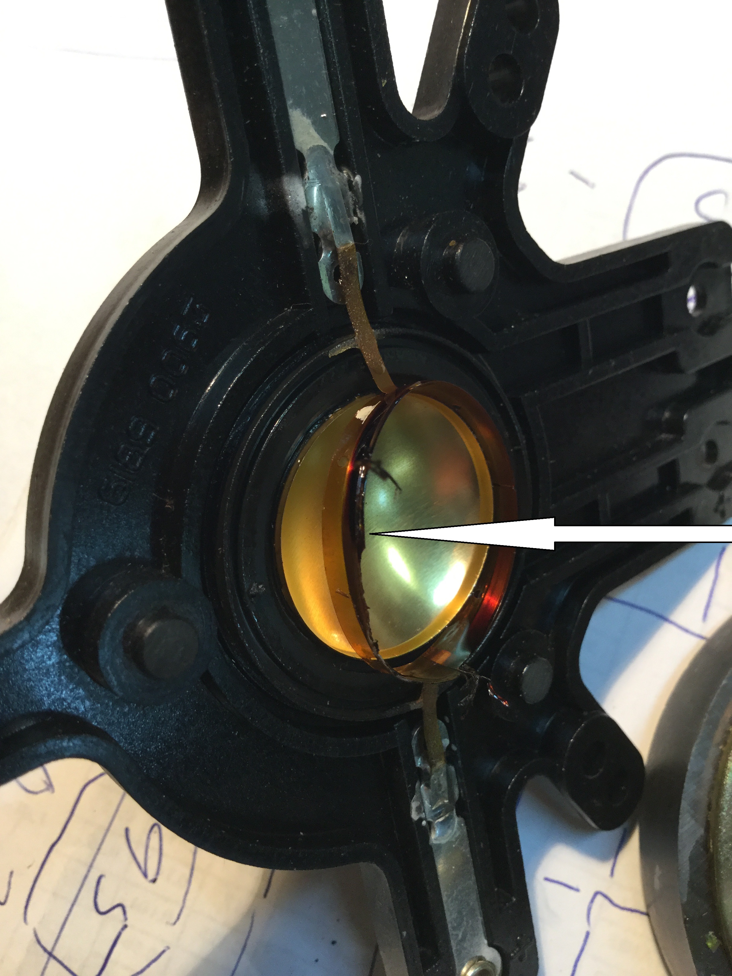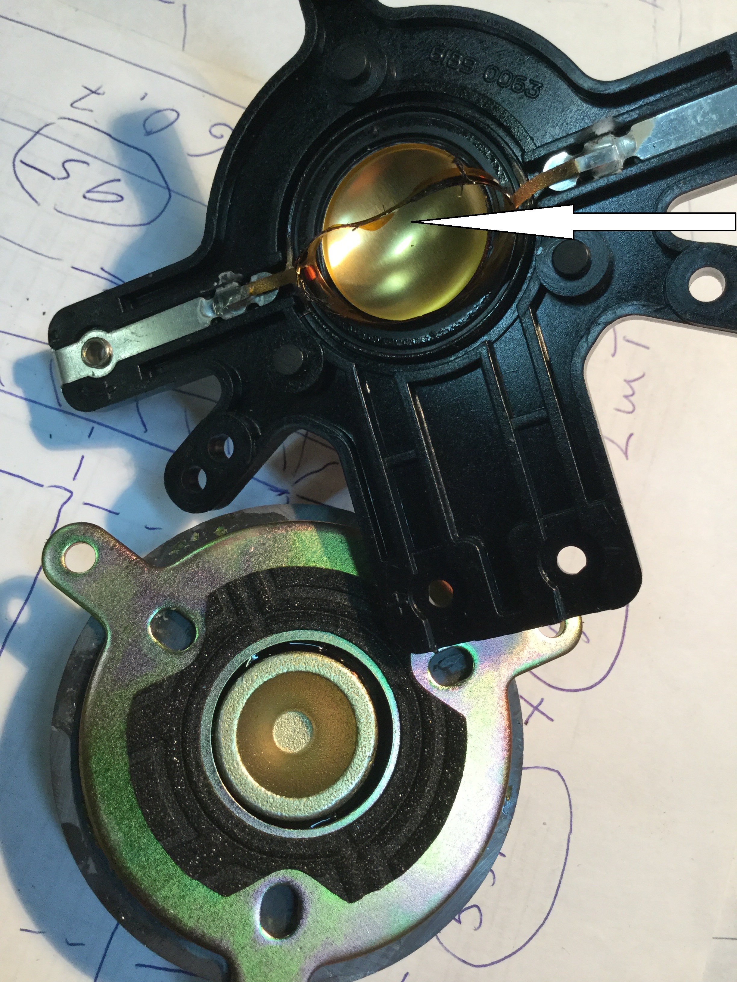 Ремонт своими силами модуль HF блока ,проще говоря пищалки , у тюльпанов. Бывают две причины у неработающих HF блоков. Первая - сожгли обмотку катушки диффузора , что почти не возможно , если конечно Вы не включаете ее в розетку 220 вольт , при чем без кроссовера .А если без шуток , они горят когда хозяева начинают экспериментировать с тестами сигнала и пожуханами усилителями.Усилитель возбуждается и выжигает пищалку.В моей практике это единственная причина выжигания HF блоков , но их много. В этом случае лучше всего замена , можно конечно отдать на перемотку ,ну чем мотать будут мастера если вам попадется пищалка с квадратным проводом.Блок пищалки идет в двух исполнениях. С круглым и квадратным проводом , об этом позже. Вторая-больше относится к производителю , который как мне кажется не продумал как лучше закрепить магнит к площадки крепления пищалки.Фирма пытается выйти из положения ,приклеиванием HF блоков корпусу техническим пластилином.Не всегда эта мера предосторожности помогает.При хорошей встряске или случайном неосторожном обращение с акустикой , магнитная система видет себя не адекватно. В следствие чего магнит отрывается и меняет свое место жительство ,влево или в право , зажимая катушку диафрагмы пищалки. На фото хорошо видны повреждения катушки и не центровка магнита. (Всем советую при перевозки акустики , класть ее на лицо или зад.Так меньше шансов оторвать магнит.)