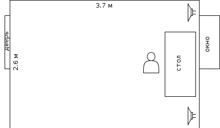 Самая удобная расстановка колонок - это дальняя от двери стена, как на картинке. Но учитывая что там окно и расстояние между колонками будет не более 2-х метров, готов к перестановке по длинной стене, если это может существенно повлиять на результат.