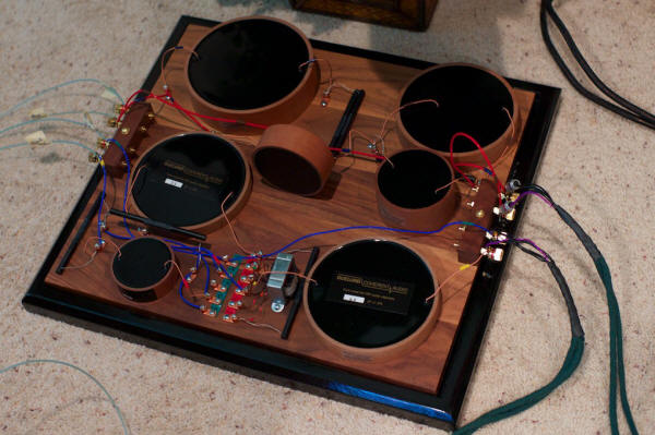 Видел, видел! Похоже на законченное - в том числе и в плане отделки - изделие! Единственный момент, на который я, как в прошлом владелец танноев, обращал внимание, это "культурный" способ подключения внешних кроссов и отключение штатных. Пришел (умозрительно) к тому, что самая "малая кровь" это замена штатных платформ с колоночными клеммами на доработанные, с переключателями (сдвоенным, те двухсекционным тумблером), которые "закорачивают" штатные кроссы, таким образом обеспечивая прямой контакт секций динамика с клеммами (по аналогии с тем, как это сделано на джи би эль дд66000). Думается, это самый гибкий вариант, сочетающийся с минимальным вторжением в заводскую конструкцию.