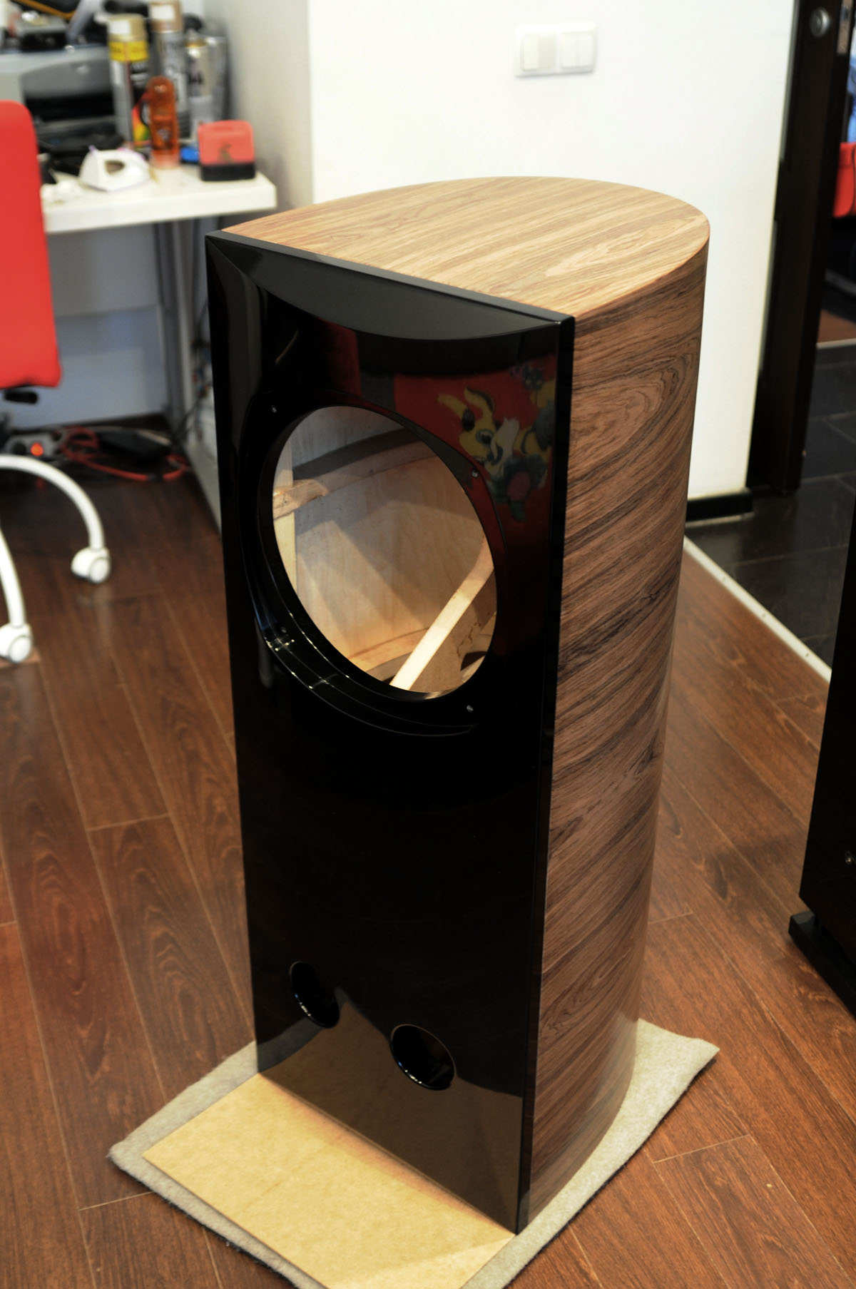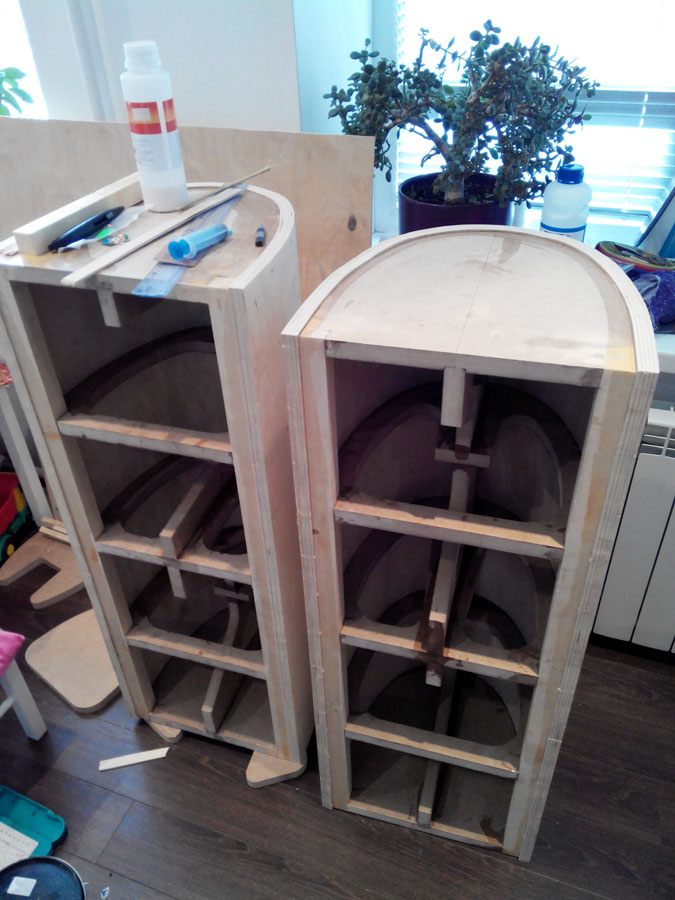 В предисловие. Я не занимаюсь изготовлением акустики ее частей, настройкой или каким-то другим видом проф. деятельности связанным с АС. Этот проект был воплощен, как давняя задумка и проверка собственных сил. Мой основной вид деятельности архитектура и дизайн интерьера. На дизайн этой системы меня натолкнул проект Marco из Римини с hilberink. Меня настолько впечатлил его проект, что я внес совсем незначительные изменения в дизайн, но в целом моя акустика благодаря выглядеть стала совсем иначе. Я обязательно отыщу ссылку, чуть позже.