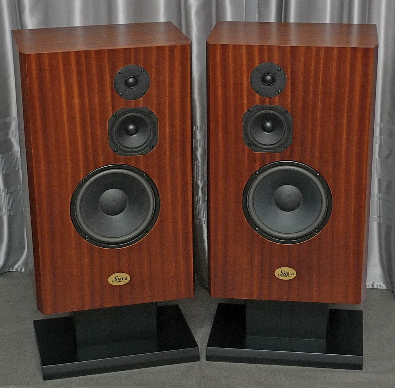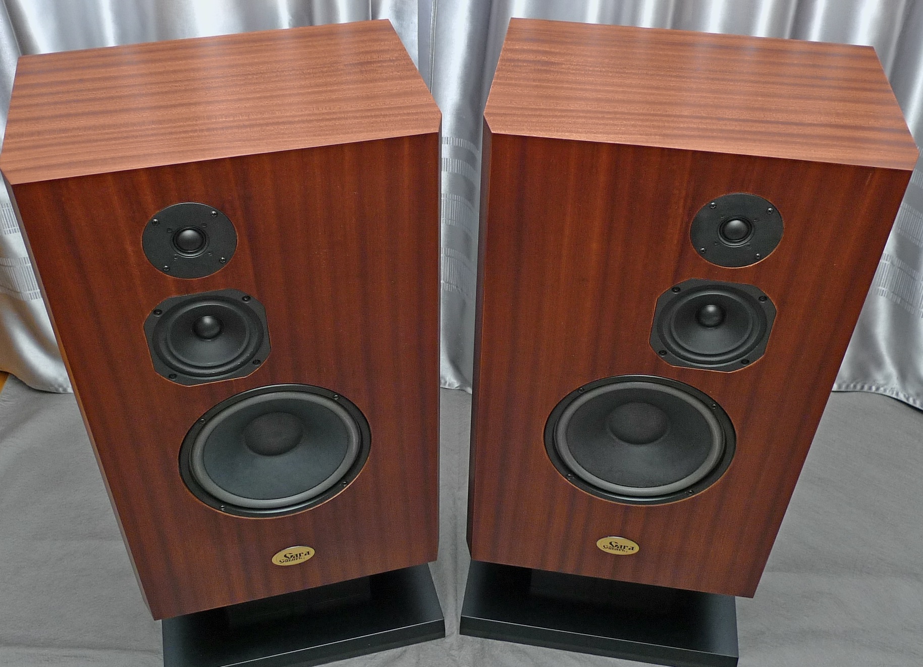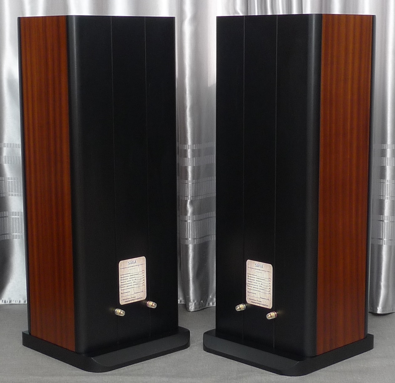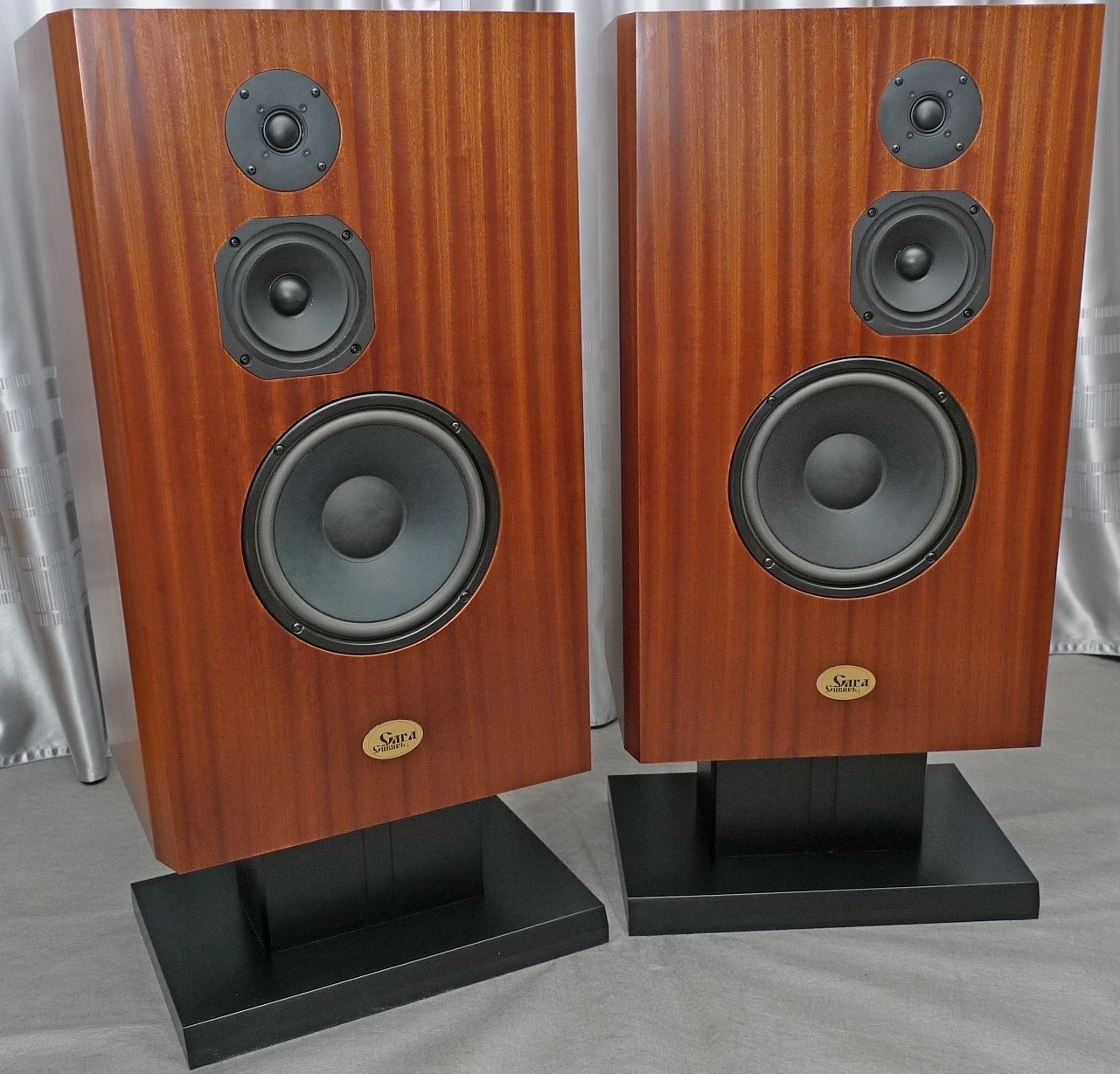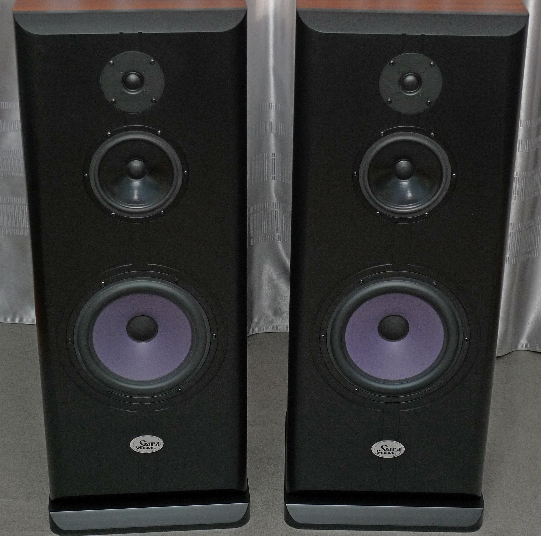 Корпус в 65 литров, закрытый ящик; наглухо, даже отверстие в сч-бокс от басового объема закупорено "саудалом". Передняя плита толщиной 54, в четыре слоя - три МДФ и внутренний - фанера, задняя плита чуть тоньше - 32 мм, основа - фанерный корпус из мебельной фанеры, 21 мм, и поверху крытый темным махагоном, на нем, в свою очередь, три слоя грунта (для выделения глубины рисунка) и жирный слой полиуретанового "Сайерлак". Передняя и задняя плиты обработаны отдельно - также в несколько слоев разноцветного грунта, поверху какая то хрень - среднее между антивандалкой и кожей. Смотрится интересно. Передняя-задняя плиты состыкованы с основным корпусом и вся готовая конструкция целиком, под занавес, облита еще одним слоем лака.