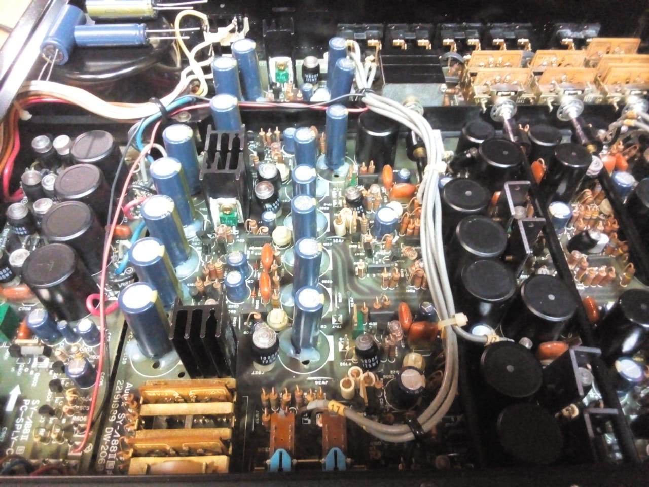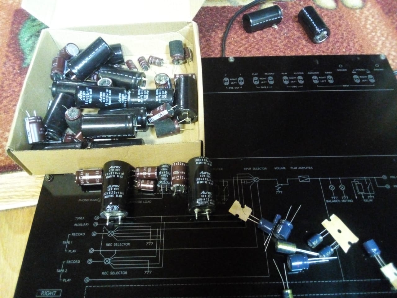 большие чёрные банки- медно-плёночные кондёры, фирмовые, аурекс.