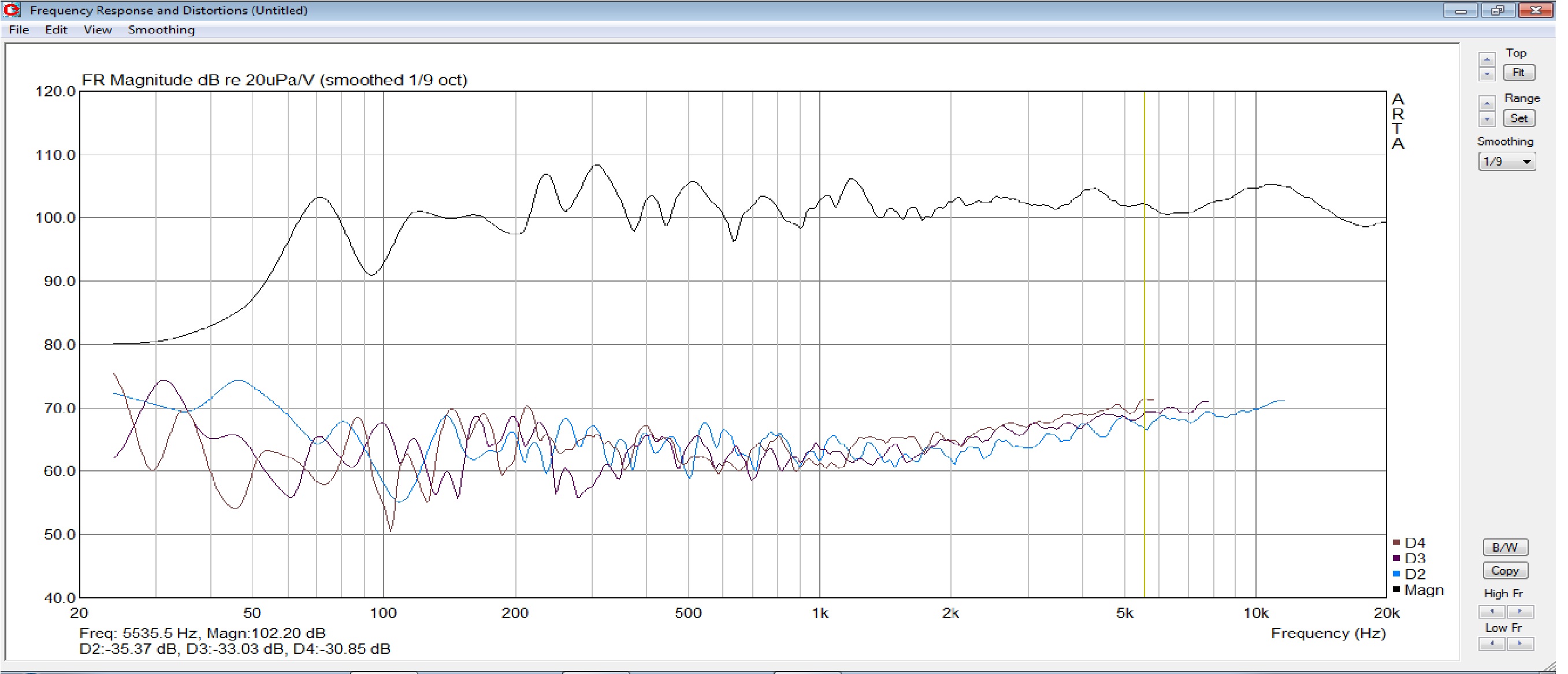 Конкретно по 2й картинке написал, что графики вручную стянуты друг к другу с использованием регулятора чувствительности микрофона, давление измерено шумомером, с 1 метра и в режиме "С", оно указано для каждой кривой АЧХ. Это сделано для большей наглядности, т.к. шумовая полка лежит на 15 дБ, а максимальная отдача АС проходит на 105 дБ. Если не стянуть графики АС, а расширять ДД графика программы от 5 до 110 дБ, то там никто ничего на разберет - всё будет до унылого приближаться к образу прямой линии.