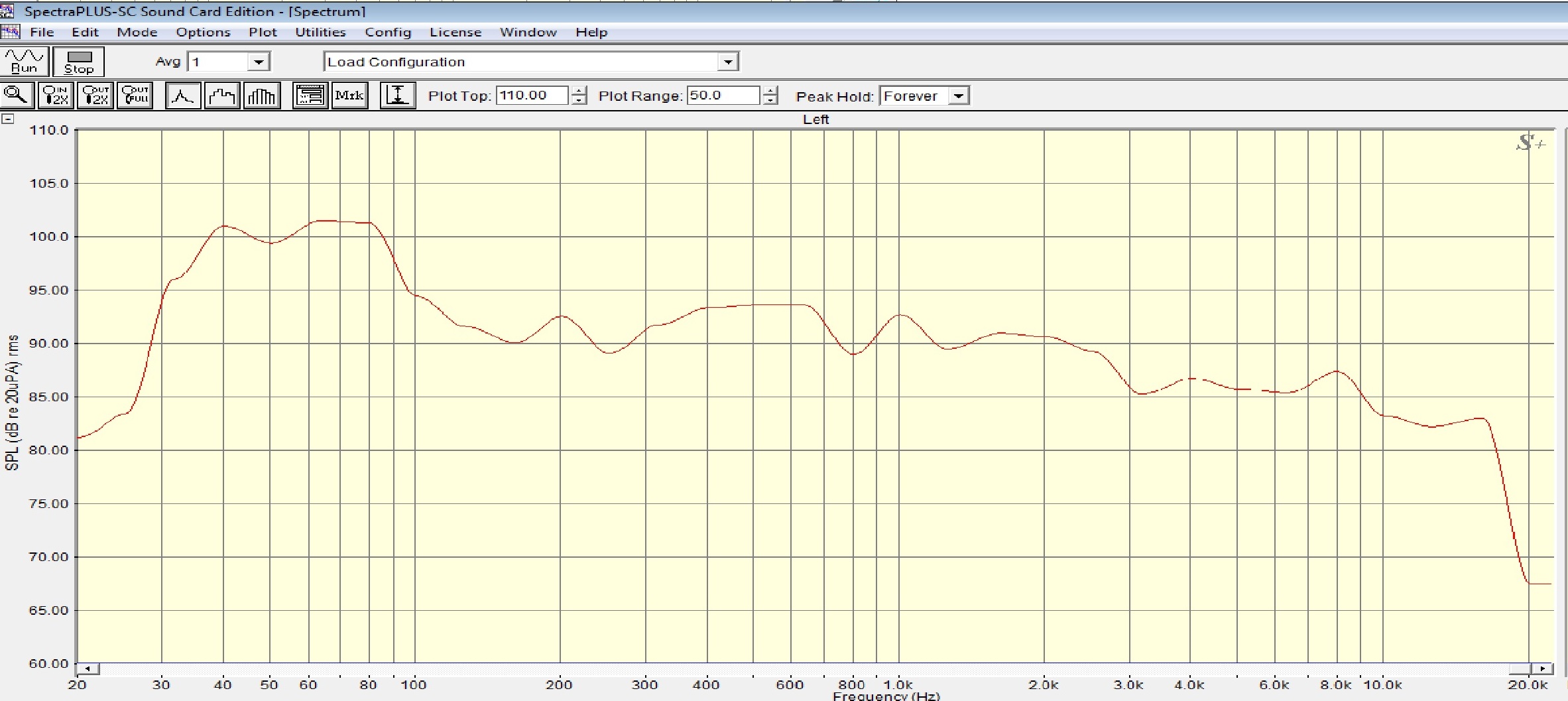 А это его спектрограмма, также на пик-холде, но в 1/3 октавы.