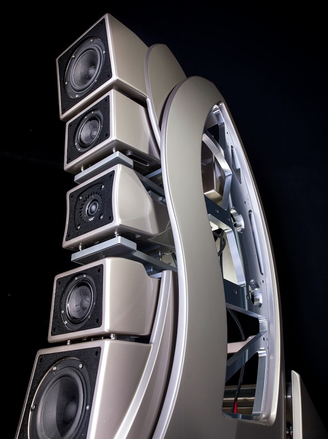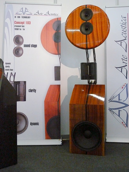 "Итальянская акустика Arte Acustica не только необычно выглядит, но и устроена нетрадиционно. В модели Concept 103, например, нет электрических кроссоверов, полосы делятся за счёт конструктивных решений и подбора излучателей. Рабочий диапазон 30 Гц — 30 кГц, чувствительность 103 дБ"