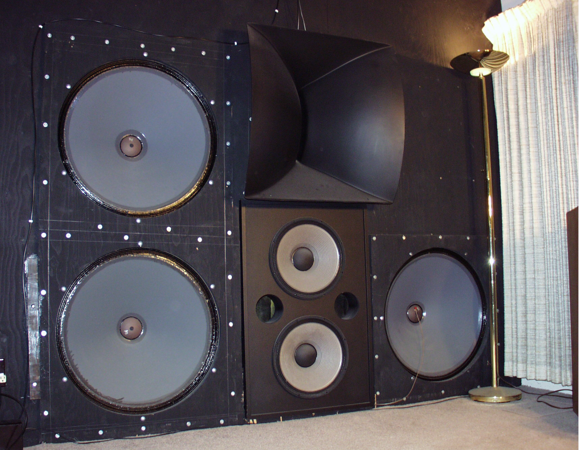 Самый "нижний" - Fostex FW80HS. Актуальная линейка. Тяжеловат и грубоват. Те, что выше - древний Electro Voice EV 30W. 101 db. Наверное, лучший басовик всех времён и народов в своём размере (30 дюймов). Штатно стоит в Patrician 700 и 800. Оптимальный ящик под него - примерно 1,5 куба.