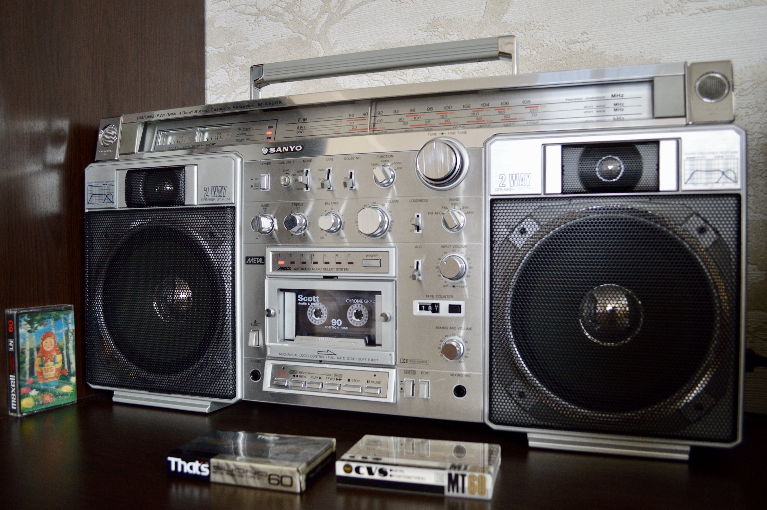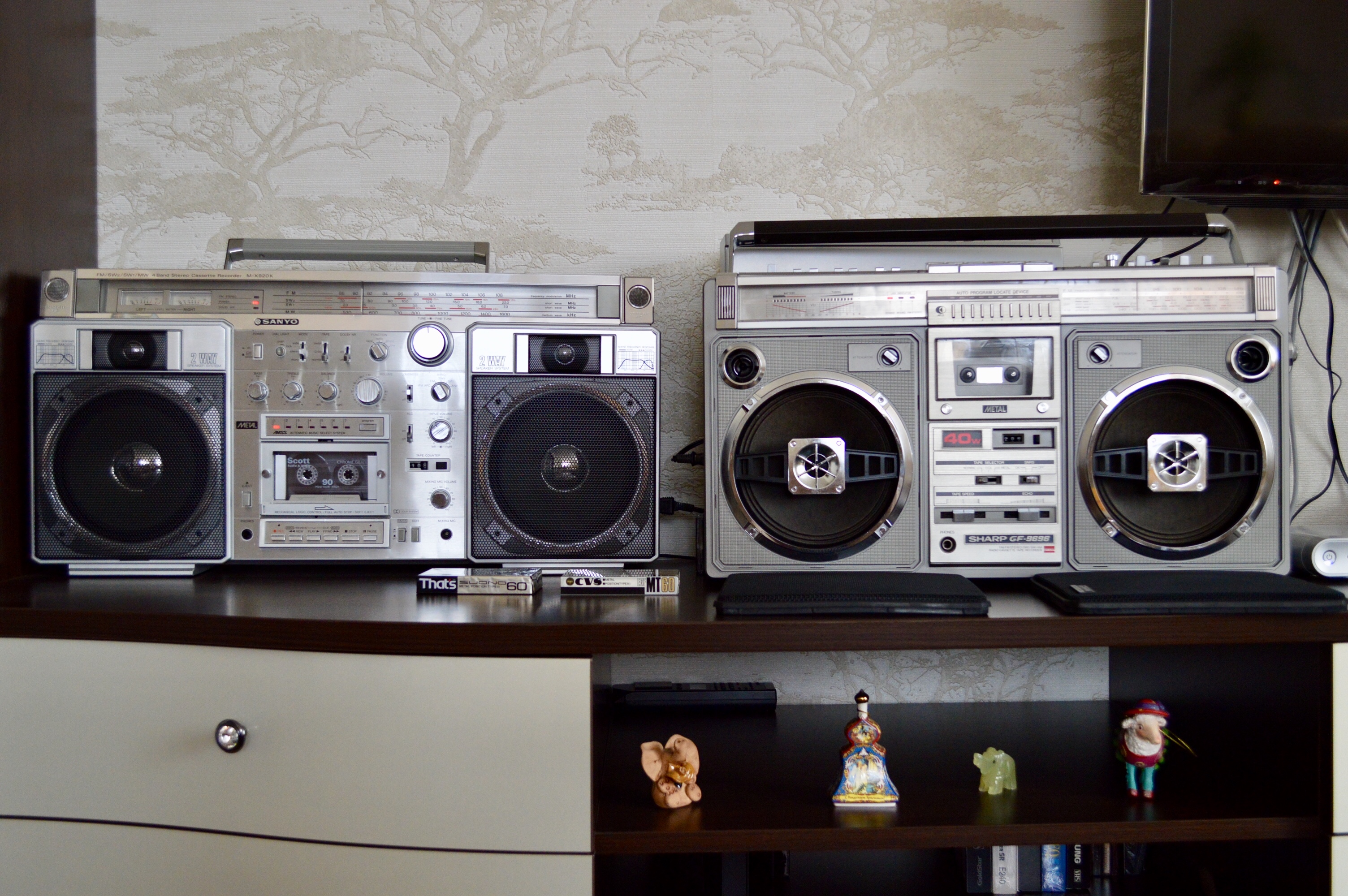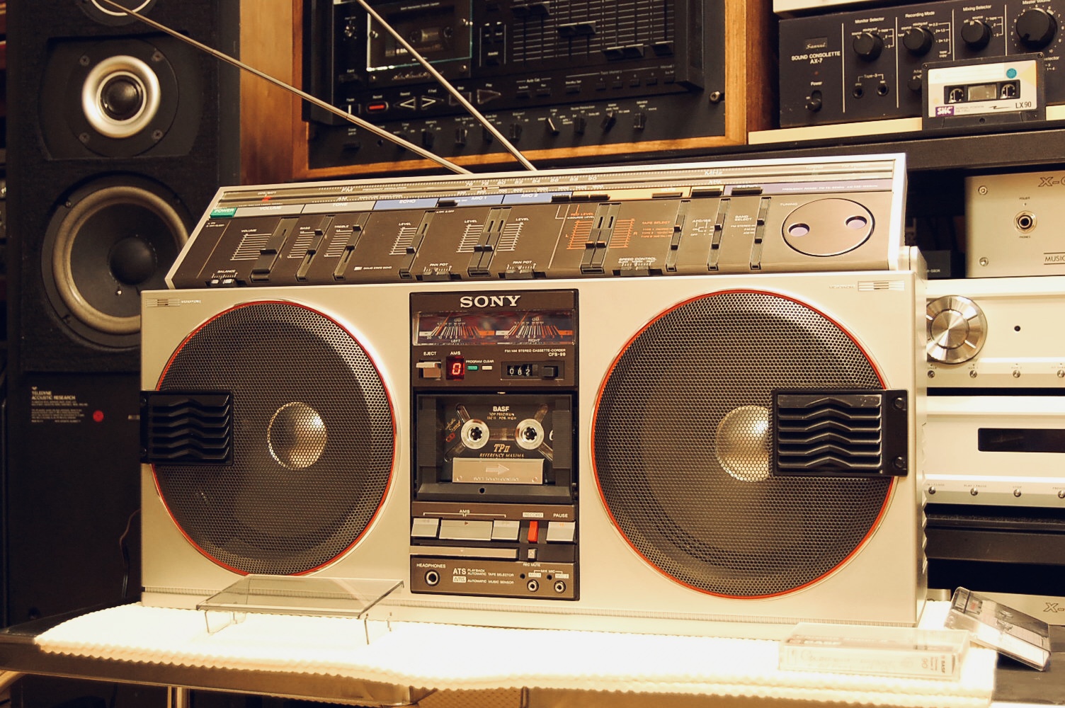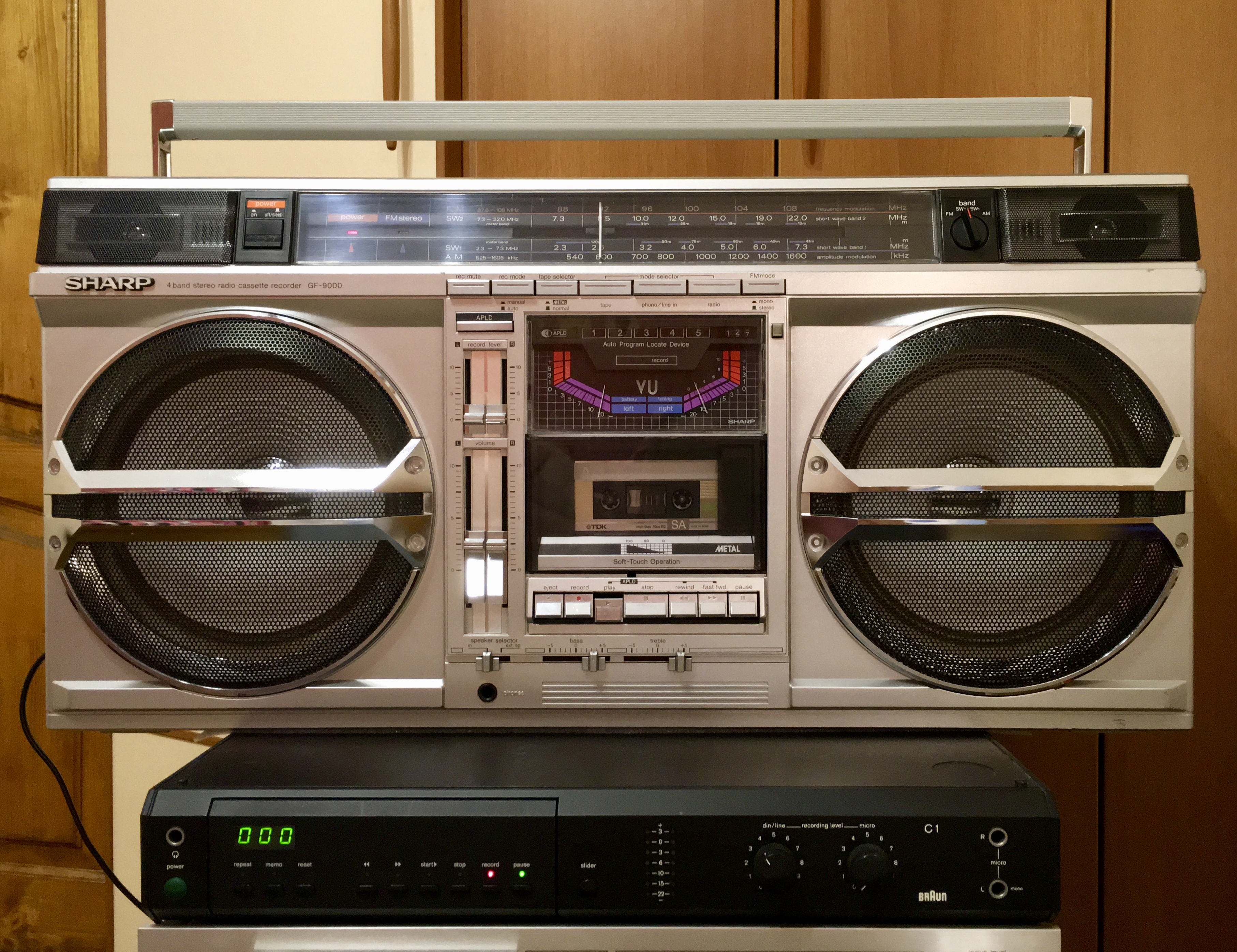 Крышки кассетоприемников в 777 требуют, как обычно 1) Снятия, разборки, мойки, 2) Полировки стекол 3) сборки 4) Восстановления 4х крепежных втулок, которые входят в оси каждой из них. Обыкновенно эти пластмассовые втулки стачиваются за 37 лет. В результате - крышки перекашиваются. Заедают при закрытии и не открываются. В тяжелых случаях повисают, перекошенные в пространстве-времени. Для ремонта требуется удалить старые, сточенные пластмассовые втулки из корпуса. Далее, с большой точностью установить новые, лучше всего металлические. Эта операция ювелирной точности, без права на ошибку. Четыре таких операции. По паре втулок на крышку. Далее, чтобы крышки открывались так, как на видео, они регулируются, с точностью до десятых долей миллиметра, и каждая в двух плоскостях. 5) И, наконец, разрезание демпферов для набития новой смазкой, как правильно написал Олег. Механизм этих редукторов плавного скольжения требует новой смазки, старая давно высохла или протекла. Для этого демпферы разрезаются, набиваются новой смазкой и пайкой герметично свариваются. С первого раза полная герметичность не всегда получается. Только после этих операций, обычно на день - два работы, достигается синхронность и плавность открытия обеих крышек кассетоприемников, при одинаковом их положении в корпусе, и без перекосов. Это одна из самых несложных операций в Шарпе 777, требует только внимательности и терпения. Обычное количество дефектов у Sharp GF-777, начинается от 30-35 после нормальной диагностики. Остальные сложнее - регулировка БГ, подбор строго нужных по размеру и качеству роликов и их установка, шлифовка головок или установка новых, последнее осложняется нюансами (требуют соблюдения именно в этой модели Шарп). Шлифовка или замена идлеров, наладка точности и правильности следования ленты в тракте. Немало времени отъедает разборка всего аппарата, полная мойка, и полировка стекол. Ремонт регулятора громкости, для чего аппарат разбирается, выпаивается потенциометр и далее с ним происходят специальные работы на день - два. В случаях, когда мне требуется совершенная идентичность увеличения громкости по ЛК и ПК одновременно, а у шарпов она разная, как правило, требуется ювелирная операция с разборкой и подгонкой регулятора. Легко можно запороть при ошибке вовсе. Ремонту подвергается весь аппарат - от входов-выходов до настройки АЧХ каналов воспроизведения- записи на трех типах лент. Последнее для большей точности нередко требует тонкой подстройки и изменения схемы в УЗ. Не раз попадались аппараты с очень небольшим пробегом, но с заводскими дефектами в УЗ, с кривой записью, при этом с оригинальными, не спиленными головками. Их настройка изначально не щеголяла точностью. Приходилось рассчитывать и внедрять изменения в схему. Тогда эффективность записи у семёрок становится на уровне дек начальной-средней ценовой категории, только налаженных, как положено. Требуют доводки пищалки, обычно они забудевают, в звуковых платах сохнут конденсаторы, которые также требуют замены, и много чего ещё. Сильное влияние на звук оказывает состояние родных динамиков. Обычно они изношены и выцвели, нередко хрипят или вовсе в обрыве. После месяца плотных занятий с аппаратом, он оживает и дает вживую такое звучание, что многим и не снилось. Слева на графике - оригинальная АЧХ каналов записи-