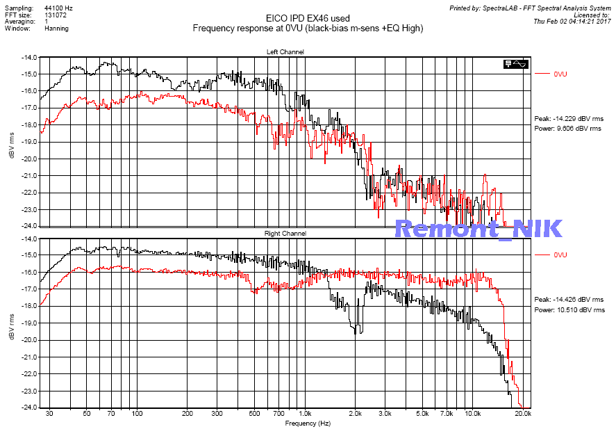 как видно при калибровке по критерию равенства отдачи 400 и 10кГц (на графиках отрисована - цветной линией), полоса 13кГц по 160nWb и спаду -0дБ - легко. Это плюс. Обычные хромы без металлических присадок, так не могут. Даже лучшие двуслойные хромы АXIA дают полосу до 12кГц (-0.6дБ), остальные хромы разных марок, еще хуже в этом плане. Минусы - при плоской АЧХ записи, перегрузочная способность как у СаундБриза: +1.2дБ@250nWb если откалиброваться по максимуму чувствительности (черная линия), АЧХ сильно заваливается на ВЧ (нужен дополнительная подьем "+2.5.. +3дБ" что бы компенсировать завал), но при этом MOL315 вырастает до серьезной величины +5дБ@250nWb