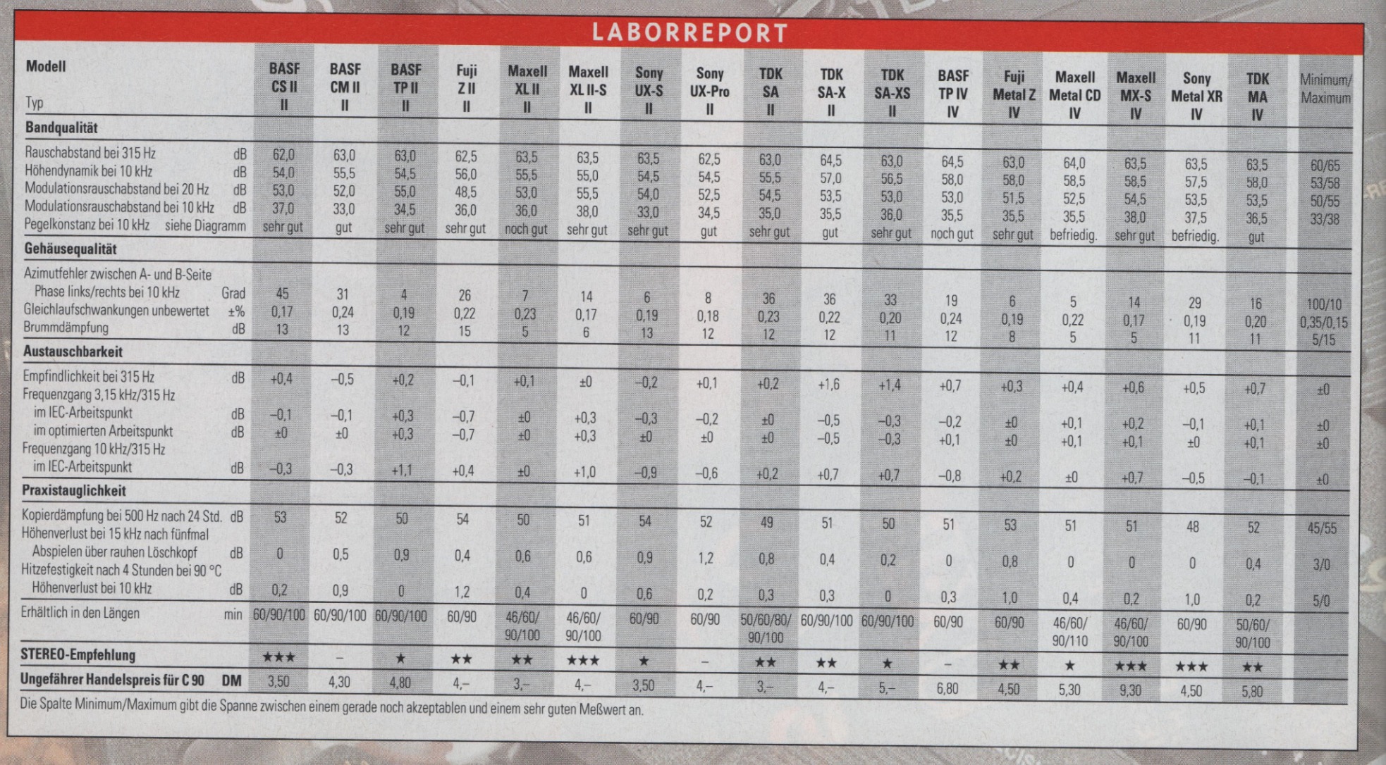 только не тракт - а мафон. Тракт может быть стандартным 4,76см и 3180/70 или 3180/120мкс, ..а вот остальное (шумы/биас нойз/МОЛ и другие) - у каждого будет свой. Если кто то возмутится - типа "почему на моей деке + ваша пленка параметры не совпадают с вашими спеками" Ответят - дак у вас же дека неправильная)))))))