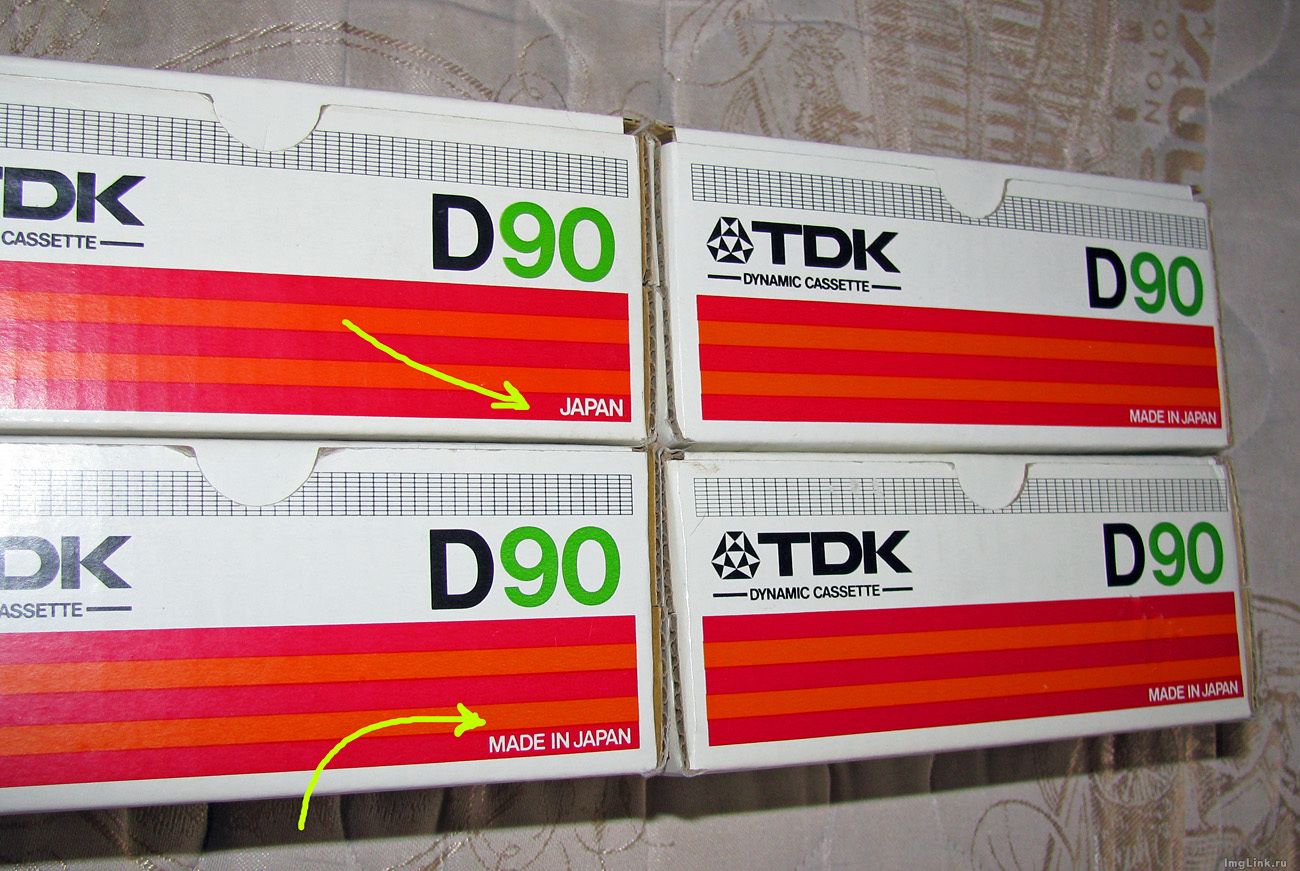 Пожилой тетёньке, очень приятной интеллигентного вида. сухонькая такая, выращивает сенполии, за JVC с полосой F1 Dynarec три штуки вместо 100 руб. запрошенных - дал 750 руб. "Китай-Город". Про Максима F. (тёзку) знаю - также поступает. Мужикам, при деньгах, и если вижу, что может себя обеспечить - никогда не даю много. Но и не выторговываю скидку. А также тем, кто для забавы, коллекционирования покупает - не сбавляю. С всякого рода "фрилансеров", (пункт #3379) драл и буду драть - и три, и пять и семь, и десять шкур. Пардон. Ближе к "телу" форума (теме) как говорил вроде Мопассан (по слухам): На "Берёзкинских" кассетах из Внешпосылторга СССР - всегда Made in Japan. Из "Культтоваров" за 9 руб. бывает просто Japan. Ещё бывает, что на кассете в углу ничего нет, а на упаковке сзади есть Japan. Или U.S.A.... Сам имею пять-шесть вариантов. На фото - не все, где-то зарыл другие, искать нету сил и времени: Картинки увеличиваются - кликать мышкой по ним:
