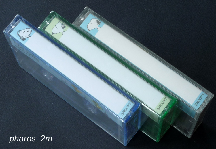 Я себе в коллекцию оставил такую же в красном футляре на 90 мин., а эту у меня купили года 3 назад, при мне ее вскрыли - стандартные кассеты с узким окном из серого пластика... внутри еще были бумажки - типа марок... |