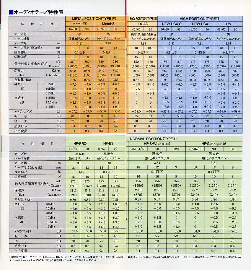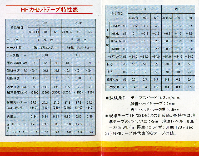 В 1983 на смену CHF пришла HF и стала первой ласточкой в замене всего модельного ряда в 1984 (из старичков оставалась только DUAD) Здесь тоже хорошо видна разница в характеристиках зависящих от толщины пленки и магнитного слоя.