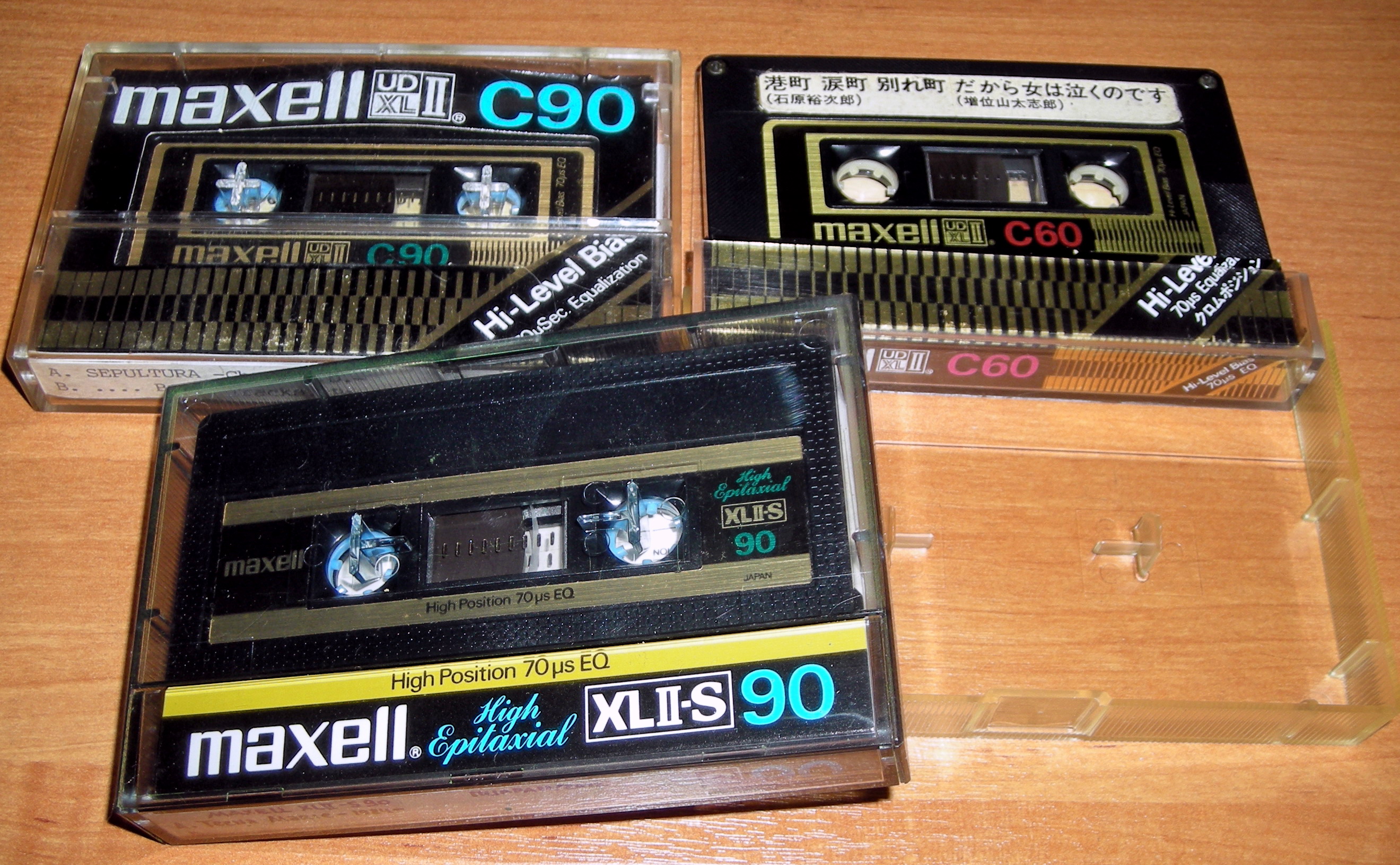 Потом UD-XLII C90 с обычным вкладышем и печатью золотом (у меня только на 60 минут есть). И самый последний XL-II c привычным двухстраничным вкладышем и простой печатью без золота.