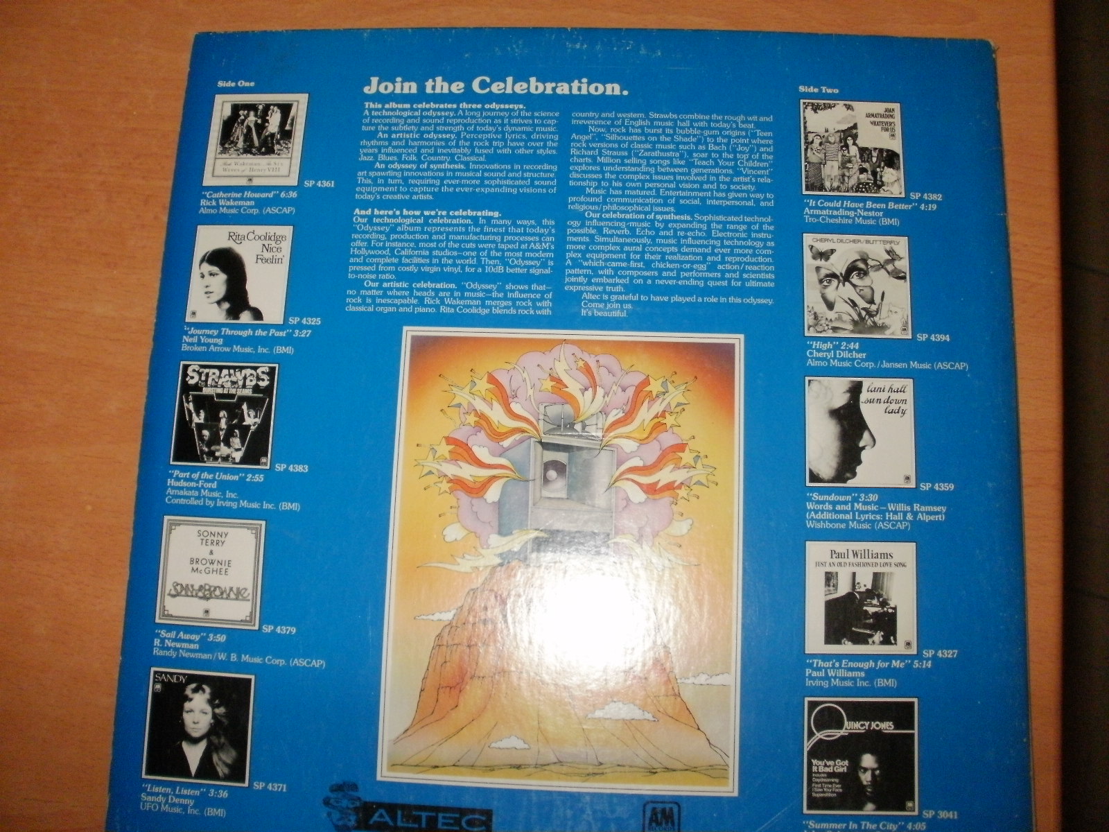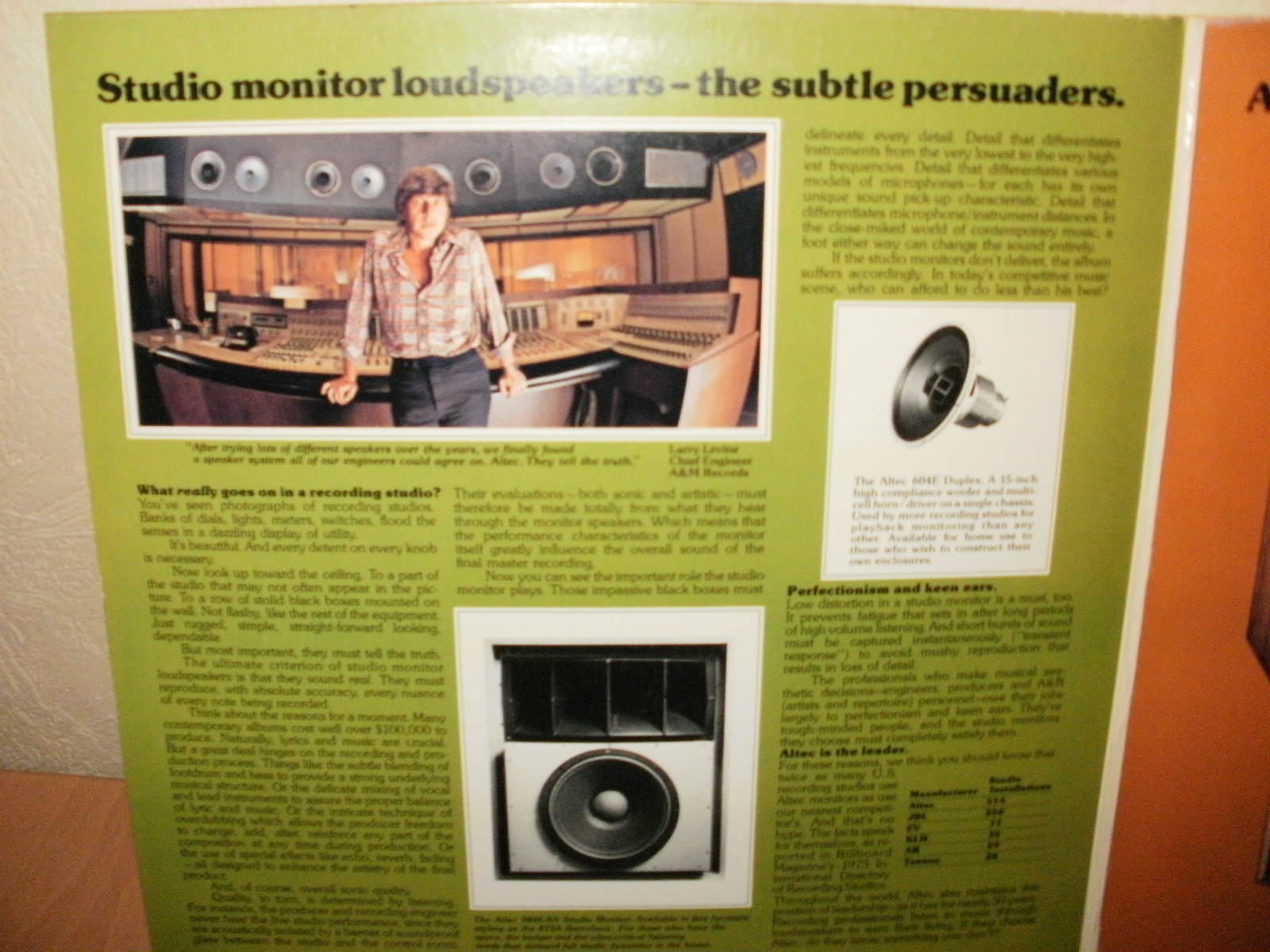Вчера прикупил диск виниловый,для тестирования акустики Альтек.Запись в студии A&M records при использовании студийных мониторов от Альтек.Специально подобраный муз. материал,различные жанры,отличный тестовый диск.Записал Вещему Олегу,нехай настроит своих убийц