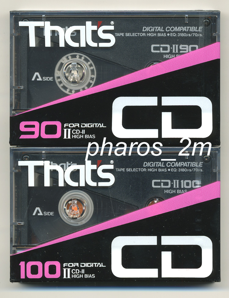 Многие пользователи находятся в заблуждении в том, что кассеты большей минутности, чем 90 (а менно 100-110) – - тонкие, как 120-ки – в отношении кассет выпуска конца 80-х годов и первой половины 90-х – это НЕ ТАК !!! Дело в том, что классический корпус кассеты имеет люфт между внешним радиусом катушки с пленкой и торцевыми стенками корпуса кассеты. И учитывая это, со второй половины 80-х начат выпуск хромовых (кобальтовых у чпонцев) и «нормал» длительностью в 100 мин. С той же толщиной пленки, как и в 90-минутных. При этом примерно в 88\89-х годах фирмы: maxell и TDK выпустили 110-и минутные кассеты с металлической пленкой – это модели: maxell MX 110 и TDK MA 110 (фото №1 и №2) Как это возможно? А дело в том, что металлические пленки имеют толщину напыления магнитного слоя на 20% меньше, чем у хрома (кобальта) или «нормала», но толщина базы пленки такая же – т.е. как минимум еще есть люфт в 5% и это позволило «намотать» дополнительные 10 минут при стандартной толщине 90-минутной кассеты. При этом – моя любимая марка – That’s – не делавшая в принципе тонких (120 и более минут), выпускала 100-минутные кассеты, но при изначально более толстой базе 90-минутной пленки (в отличии от конкурентов) и в результате - “That’s” – для этого сделала катушку меньшего размера, чем стандартная… (мне кстати – как любителю крупных катушек – жалко, что That’s не делала кассет с крупными колесами, но при этом умудрилась сделать самые маленькие) …смотрите фото №3 |