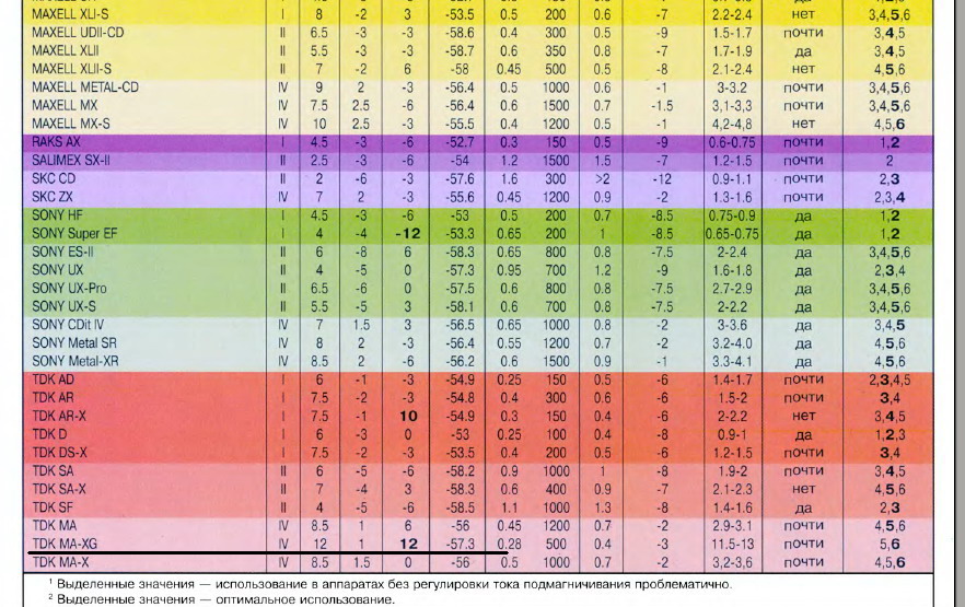 Есть еще 2 больших теста из Радио и (не помню какого журнала, могу скан выложить), так если свести эти тесты, то много не сходится... А разницу между AD, DS-X, AR, я разобрал для себя сам, прослушав все это на одном магнитофоне, кассеты все были новые 1990-1991 год, диагональная серия. DS-X была стекляшка. И мне AR понравилась больше чем DS-X У вас результат может быть другим. Но, повторюсь нигде я не видел на оф.материалах от TDK, что DS-X это AR. Хотя и то, что DS-X это AD, я тоже не встречал))) Так что, каждому свое. Полагаю сейчас, это уже очень сложно разобрать. Если кто-нибудь выложит такую информацию, будет здорово... |
