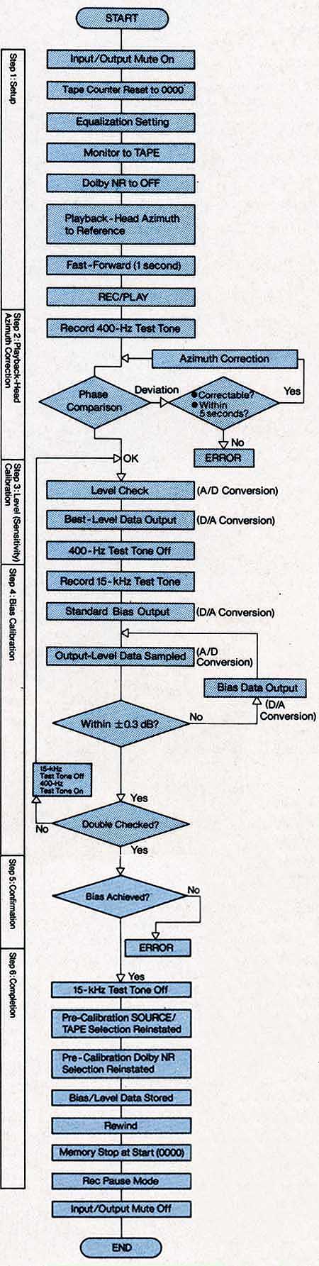 Причин скалибровкой может быть много: врут внутренние генераторы, врет индикатор, не стоит "отправная" точка (настройка на типовую ленту при отключенном калибраторе), не хватает диапазона калибровки из-за износа голов или малом сопротивлении ограничивающих резисторов, не работает процессор калибровки. Последняя проблема самая сложная, но встречается крайне редко. Думаю, что, скорее всего, причина номер 3 и/или 4.