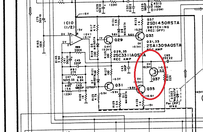 Режим муттинг (Рек Муте)служит для получения незаписанных (пустых) участков в режиме записи. Т.е сигнал не должен поступать на ленту. Поэтому в режиме записи или паузы он должен отсекать сигнал. Как это реализовано - другое дело, но скорее всего Вы что-то не так проверили или эти транзисторы выполняют другую задачу. В любом случае транзистор во время записи своим переходом КЭ постоянно подрублен в выходу УЗ и висит параллельно. А у перехода диодные свойства. В импульсе, когда у нас идет сложный муз сигнал, контур корректора УЗ кратковременно выдает напряжение в 10раз большее, чем на пост токе. И висящий переход каждый раз может неадекватно откликаться на такое воздействие, внося грязь. |