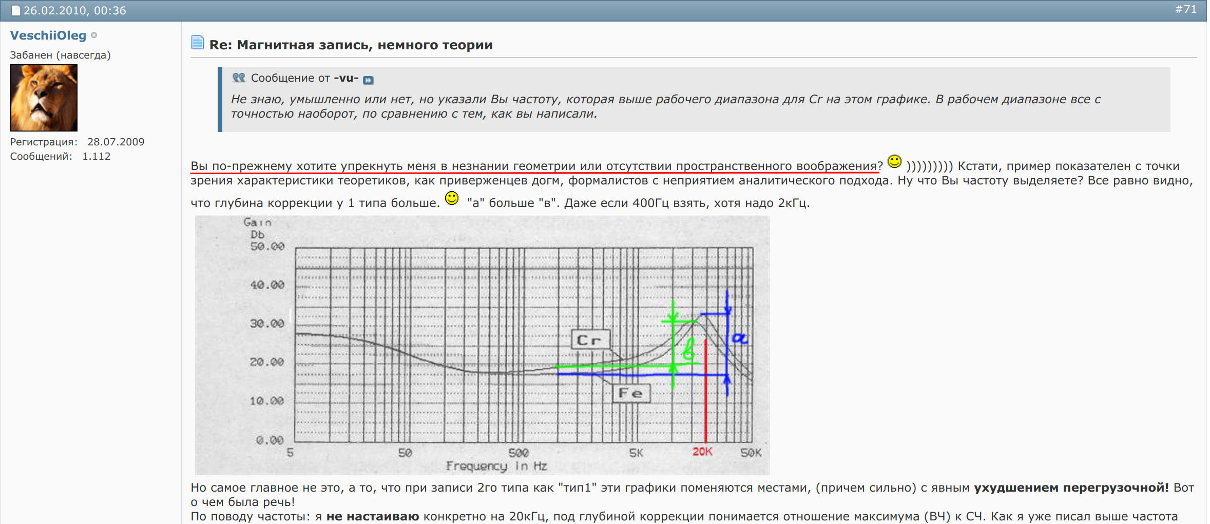 Еще в самом начале "Радуги" В. Леонов написал, что в 1000м Наке используется одна и та же коррекция для всех типов, но Партагас по диагонали прочитал, как обычно. Впрочем, как и не обратил внимание на картинку г-на из Тумана (приводилась тоже в районе 11-12стр Радуги). Ну и С. Агеева посты я тоже приводил. Так что в приведенной схеме выше все верно, АЧХ УЗ идут параллельно друг другу на СЧ как на моем хрестоматийном рисунке - разница только в токе записи. Радиолюбители не применяли коррекцию "хром на 120" - ни в одном любительской схеме этого не было. А вот штатные режимы под хром были (хром на 70) Кстати эта схема одна из лучших любительских с источником тока.