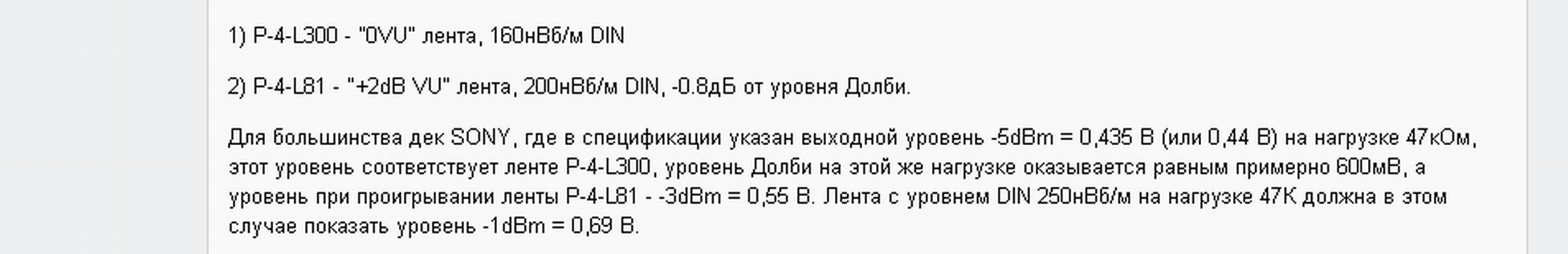 Это будет относительно какой кассеты по уровню:L81 или L300? P.S.У "тёти Сони", для разных аппаратов, использовались разные кассеты ,для установки уровня "0VU"... |