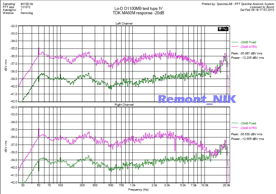 Но такого количества ляпов, не встречал даже в Дынонах. УВ валит АЧХ одновременно и на НЧ и на ВЧ.Это в дополнение к тому, что головы сами по себе валят на НЧ, из-за особенностей конструктива сердечника ГВ.. УЗ аж на одном транзисторе! На метале МОЛ315 микроскопический (знаменитые головки Хитасенрит) Микросборка Долби даже в мониторе со входа на выход, валит АЧХ выше 18кГц на децибел. Спектр шумов грязнючий, палки торчат как частокол.. Недофильтрованные в БП 100Гц, потом душат по всему мафону. Проектировал их видимо, ...тамошний Вечный Олег, в перерывах между ремонтами экскаваторов.. такого обилия проводов,перемычек, разъемов - не встречал ни в одном мафоне. В остальном приятный дэк.