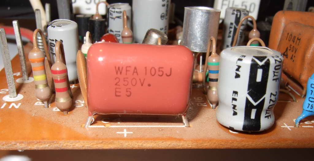 Да, мне про ELNA старые стало интересно, может они разные попадаются? Вот серенькие на фото (правее нового полипропилена Panasonic), которые совсем не деградировали за 40+ лет (сам был поражен). Вы про такие же, что аж вытекли?