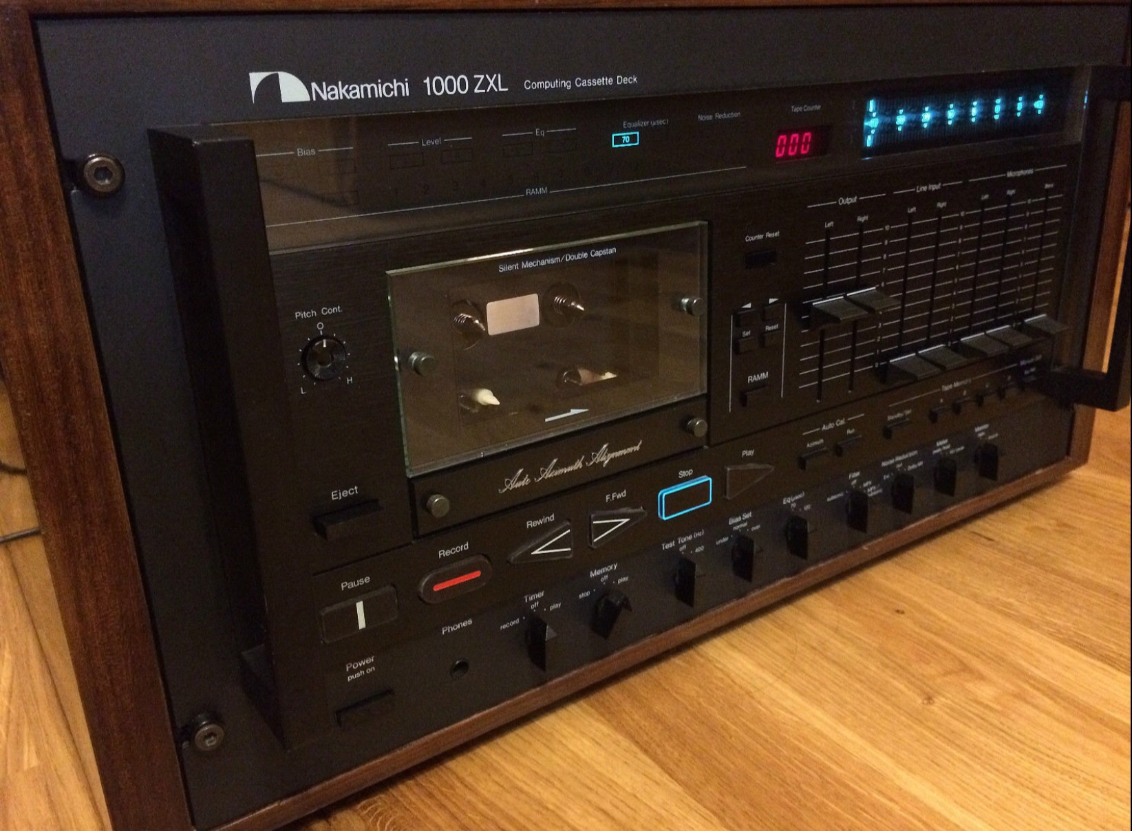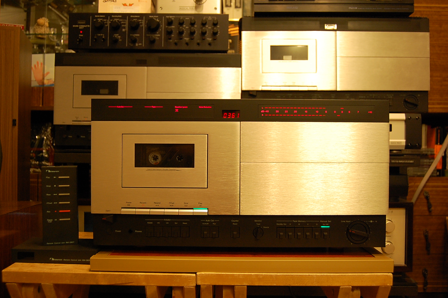Даже как то неудобно - Король все таки ... Шум Nakamichi 1000 ZXL (0dB = 1000 mV) в полосе 20-20000 Hz измерительный усилитель 2609 Измерения для левого канала Невзвешенное RMS 120 uS = 6,2 mV (S/N = - 44,15 dB) 70 uS = 4,8 mV (S/N = - 46,4 dB) Взвешенное RMS 120 uS = 1,55 mV (S/N = - 56,2 dB) 70 uS = 1,05 mV (S/N = - 59,6 dB) Частота на стирающей головке 52,536 KHz Напряжение U = 7,64 V RMS Искажения THD = 1,7 % Частота на головке записи 105,07 KHz Напряжение U = 5.14 V RMS THD = 1,35 % (TDK SA) Искажения синусоиды даже на осциллограмме видны. Такой уровень искажений объясняется тем, что синус там преобразуется из прямоугольного сигнала задающего кварцевого генератора. Искажения опорного генератора 400 Hz приемлемые = 0,2 % Но пишет и играет, хад такой, чюдотворно ... |