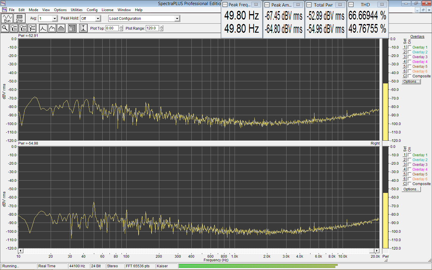 Отображение пиковой частоты и THD вполне можно отключить - для шумов это лишнее, + меньше будут захламлять график.