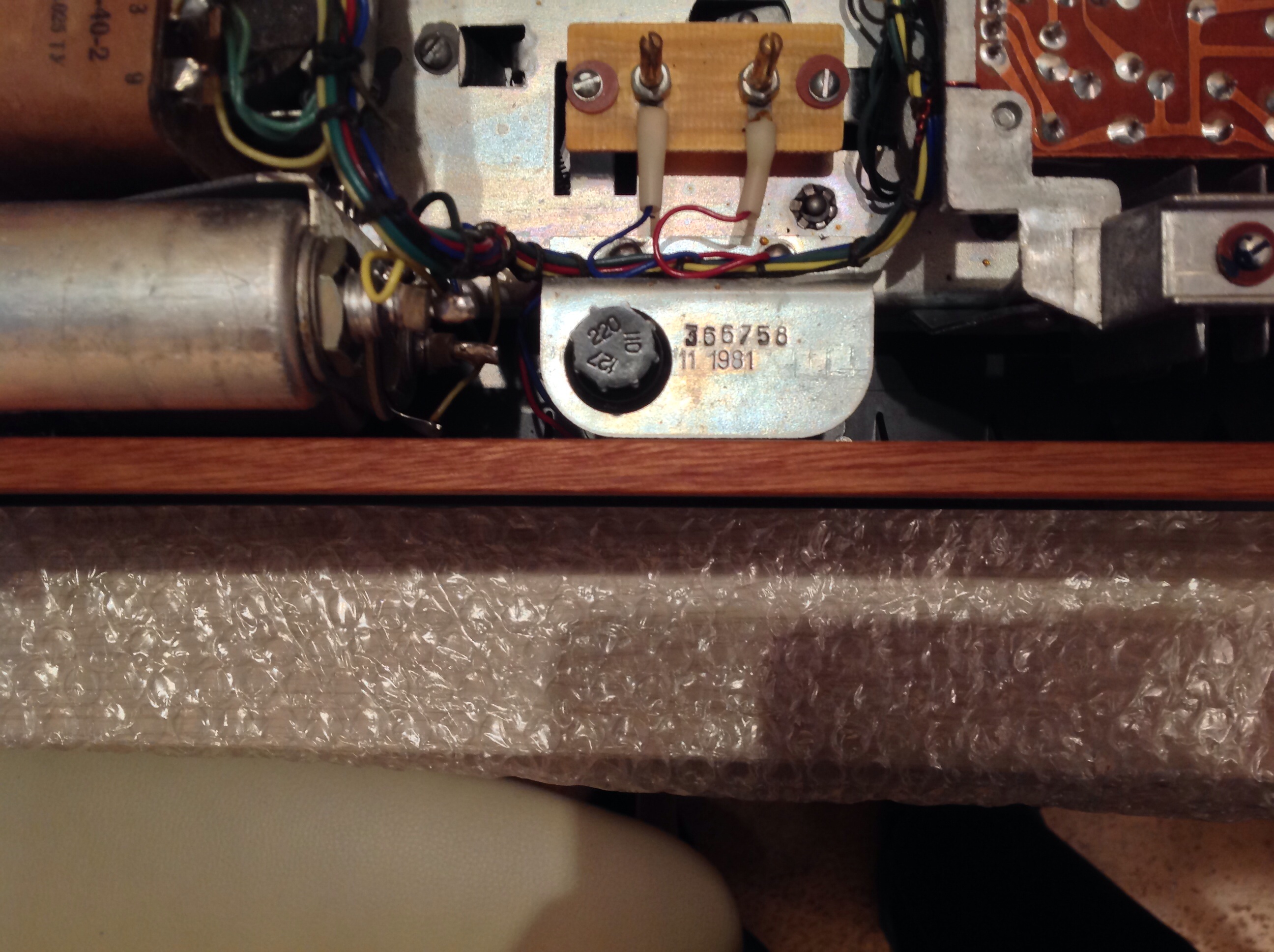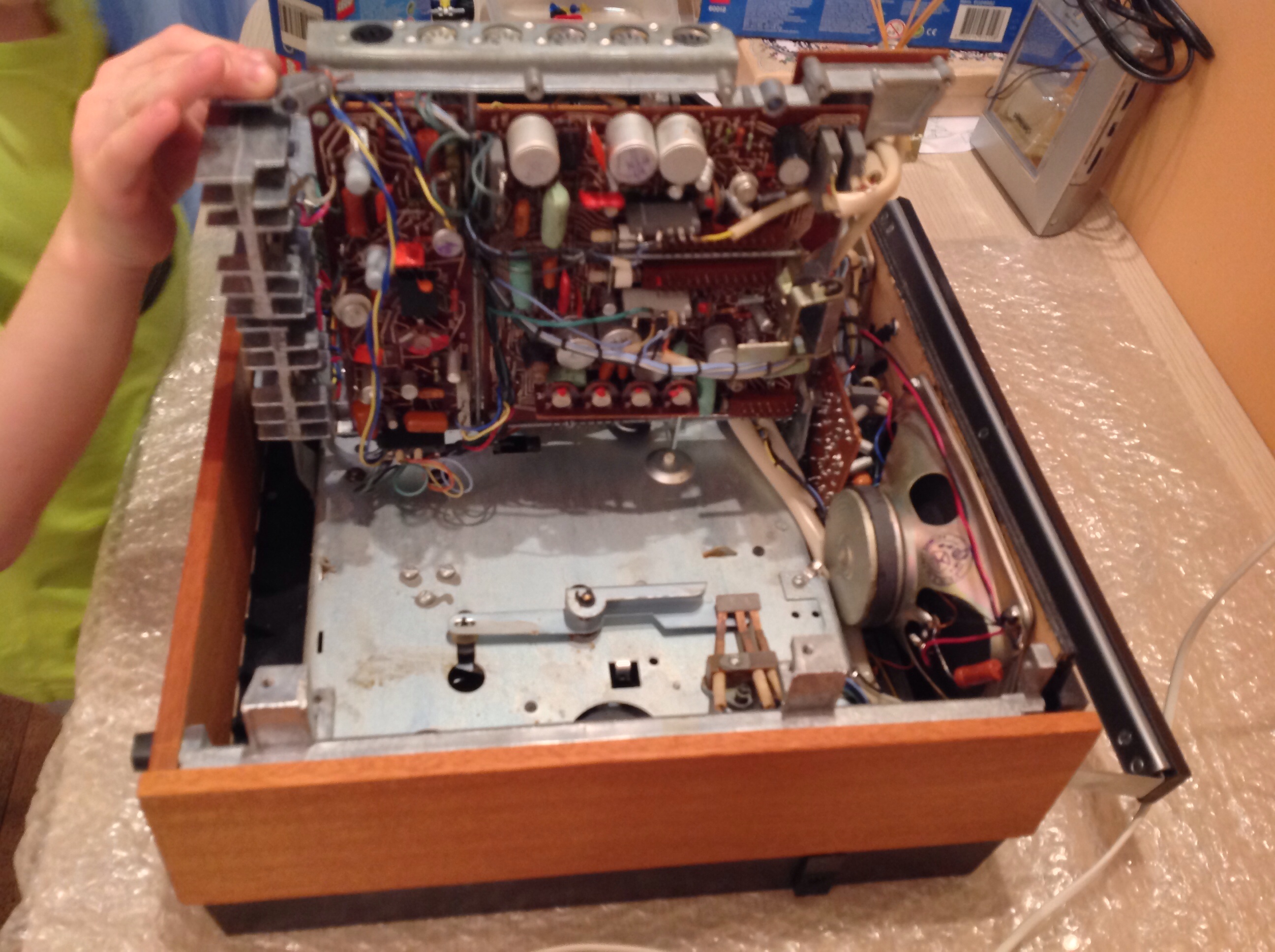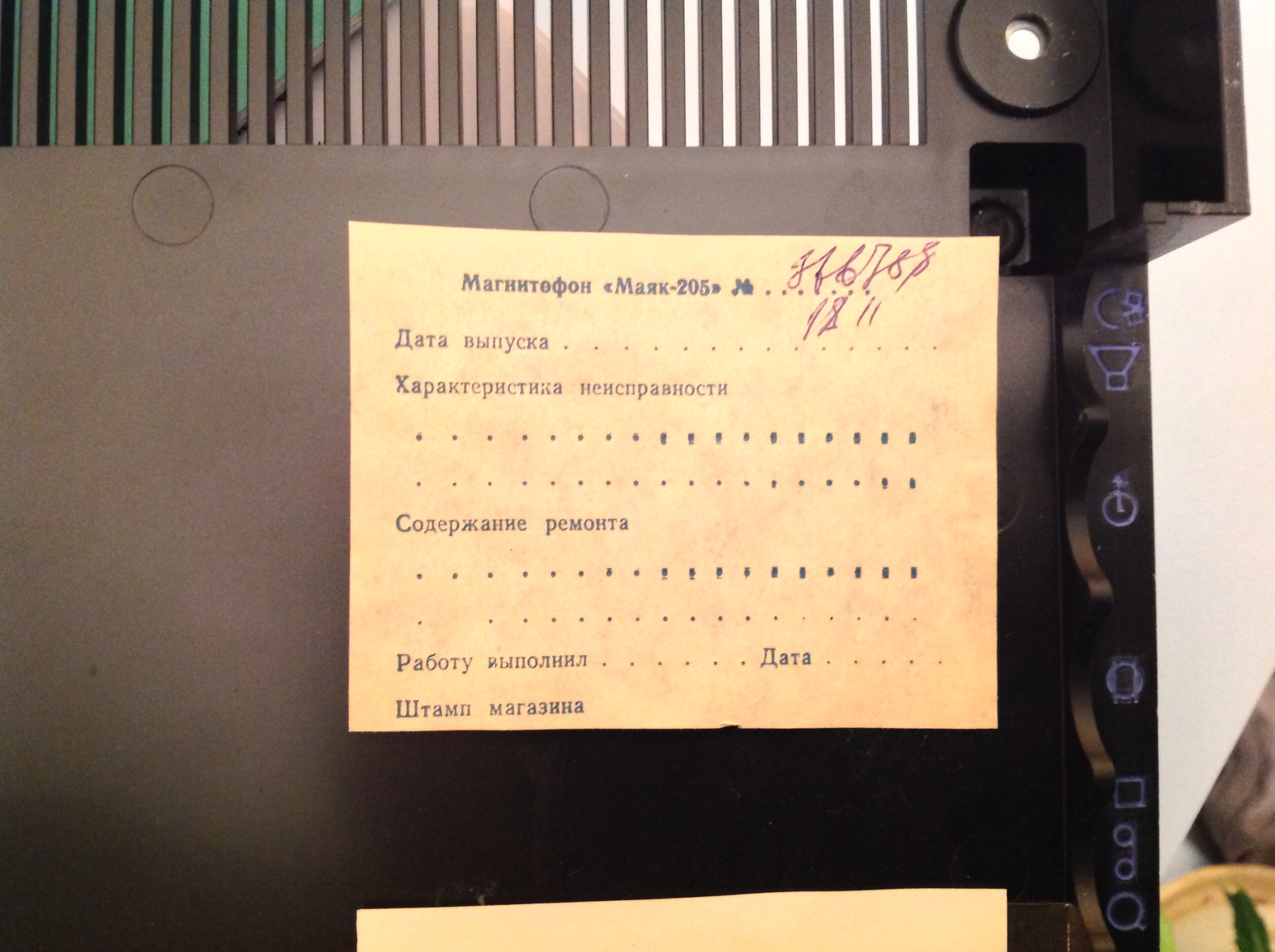 Замена емкостей оживила умерший правый канал. Обратите внимание на дату выпуска магнитофона. Забавно, но в 32 года он обрел вторую жизнь.. ![]() |