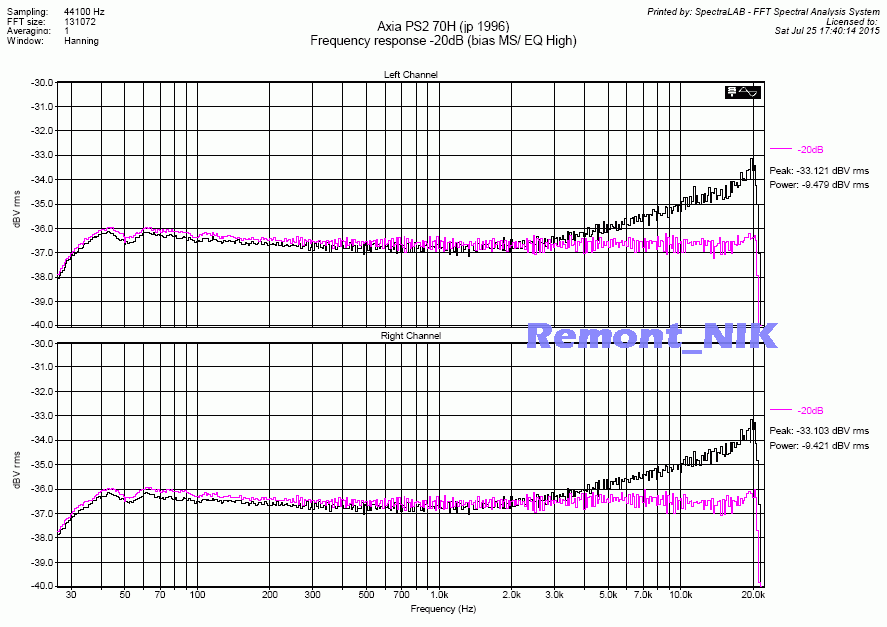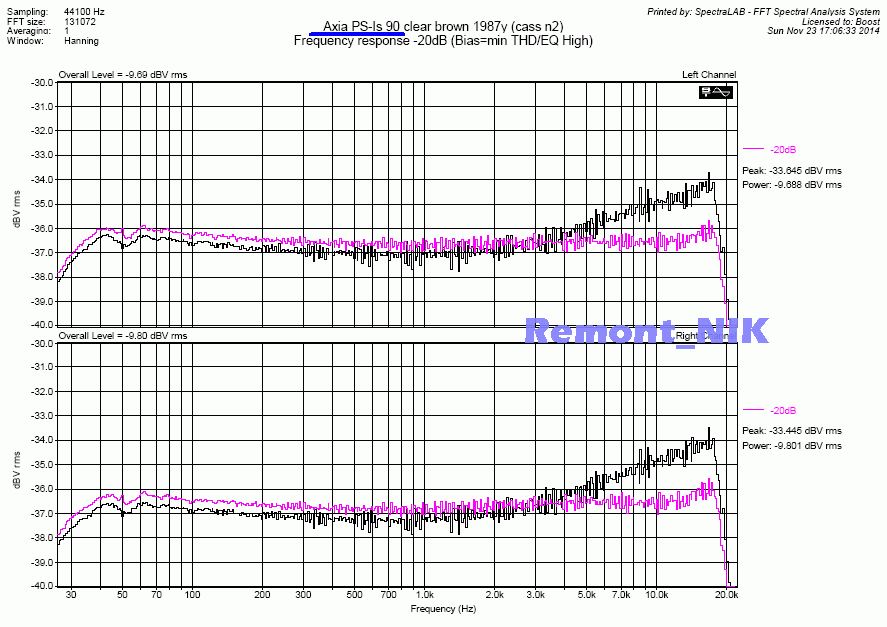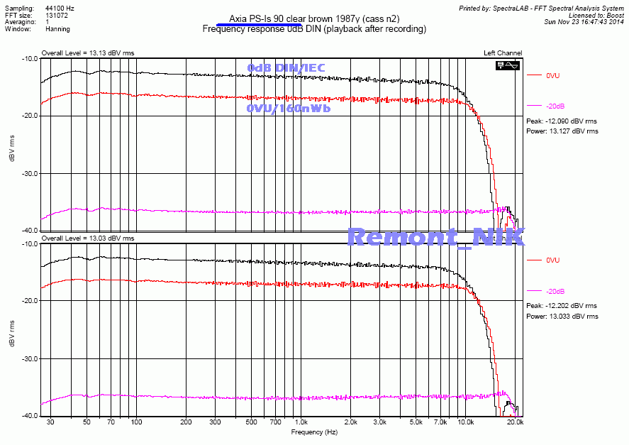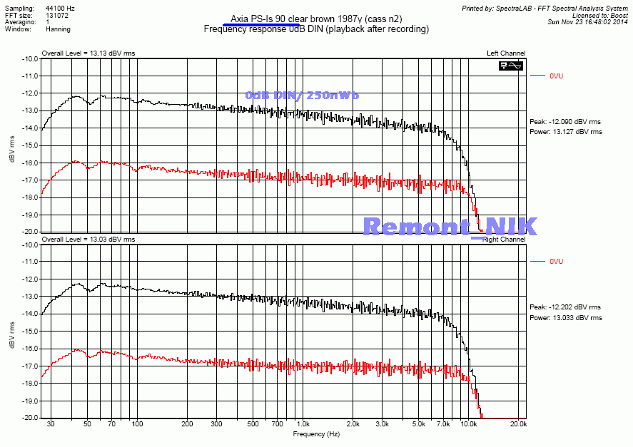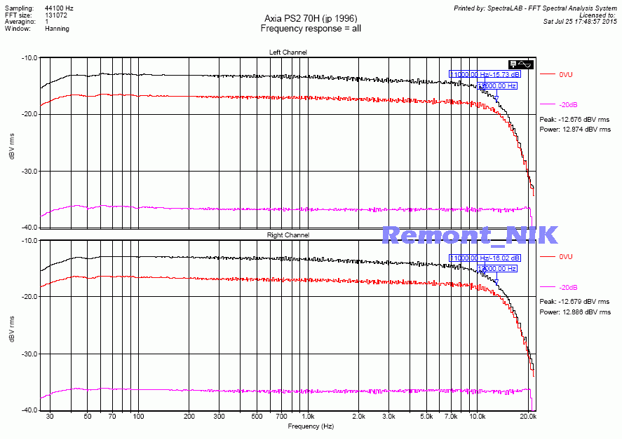 Мало того что сверхширокополосный (почти как у митола полоса) и ультрамалошумящий (-60дБА), этим искушенных кассетоманов трудно удивить.. При этом - ультралинейный, имеет АЧХ совершенно ровную от 25Гц до 22кГц (-20дБ), без привычного горбика на 5..8кГц, или завальчика после 18кГц.. И что самое удивительное - при перегрузе спектр гармоник расширяется в сторону ВЧ слабо, растет в основном вторая гармоника.. Для хрома - совершенно нетипичное поведение. Хром как раз и характерен тем, что влетает в насыщение резко и спектр гармошек как частокол.. При этом стоит в 3-4 раза меньше ТДК СА-Х 1988г (ближайщий аналог)