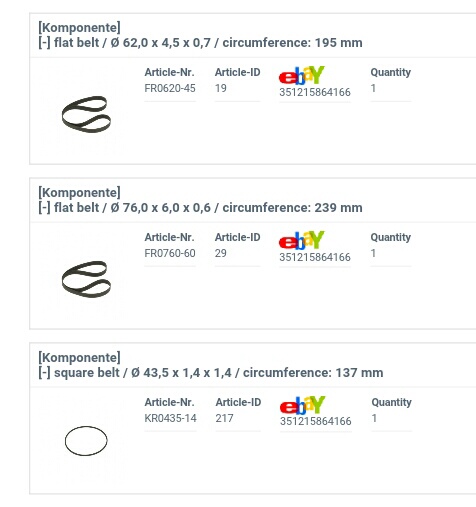 Блин, да у всех Пионеров с reference master ЛПМ всё одинаково практически, отличия лишь в деталях выталкивания двери (боковые детали), у более ранних с поршеньком, у поздних чисто шерстенями, да с установкой с наклоном или без разлиия не большие. ,,Основа,, одна и идлер и ремни одни и те же: межвальный - REB-509 119,5мм, движковый REB-501 97,5mm. У моделей попроще вместо REB-501стоит REB-1143 с чем это связано незнаю, ставил на место 1143го 501 всё отлично подходит, может от типа втулки, бронза или пластмасса щависит. Короче вот размеры, для одновальных не нужен большой широкий пассик. Идлеры так жеодинаковы.