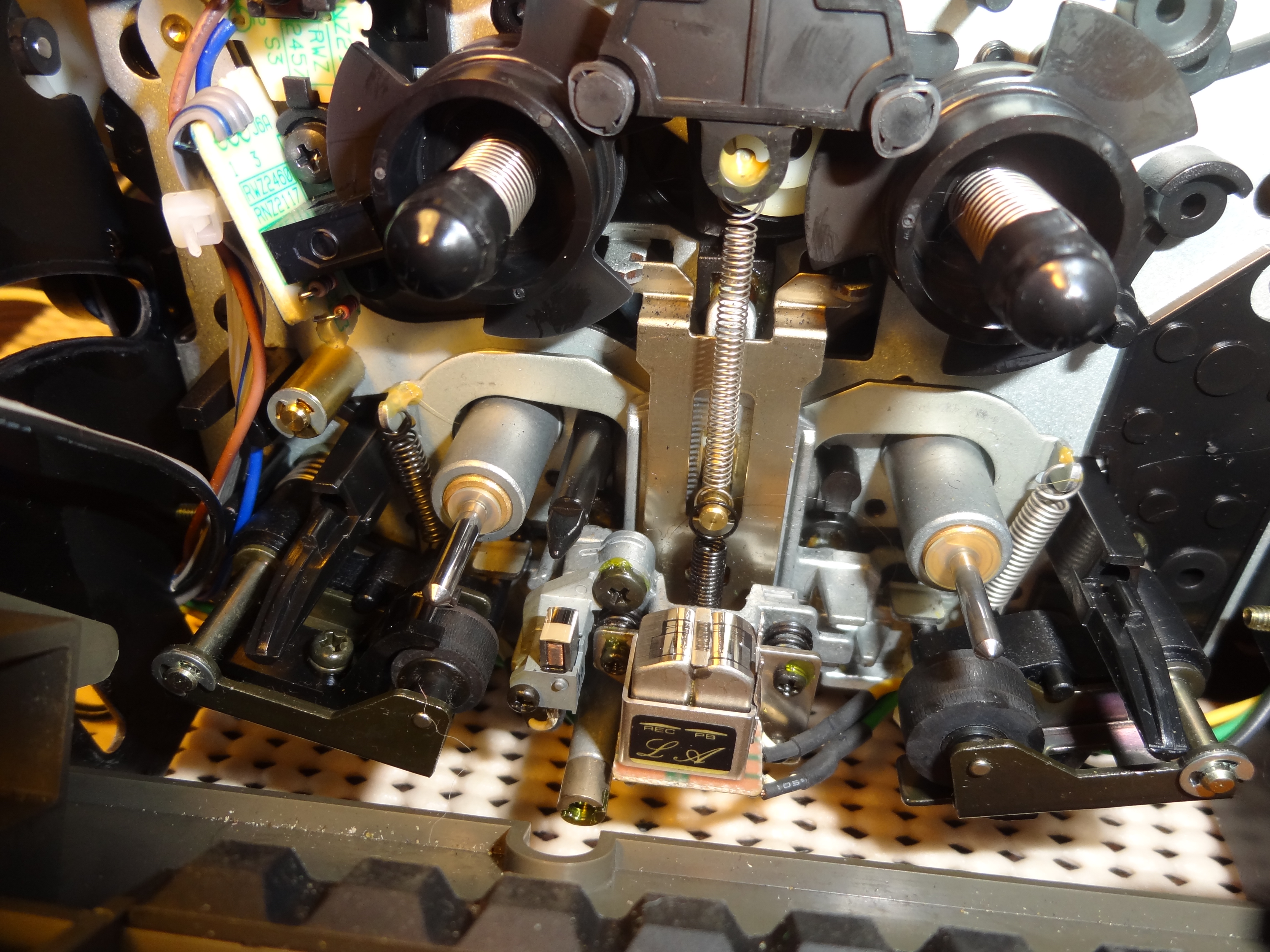 Вот условно лента с дорожками и стирающая головка. С лева лента идёт правильно относительно стиралки, справа как сейчас у Вас, от того и подтирант правый канал другой стороны кассеты.