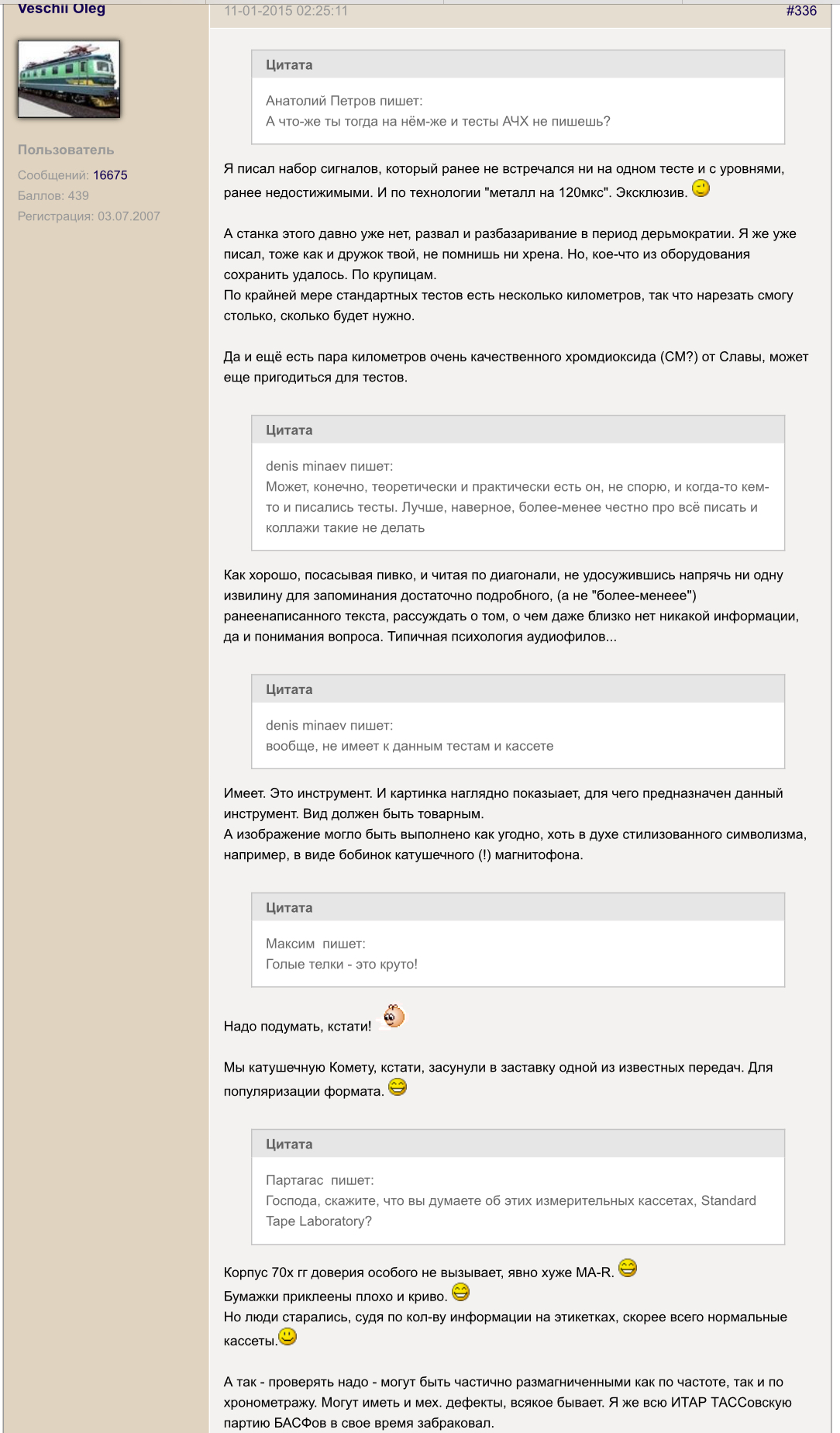 | Veschii Oleg пишет: тклонения по каналам вписаны ручкой прямо на кассете. |