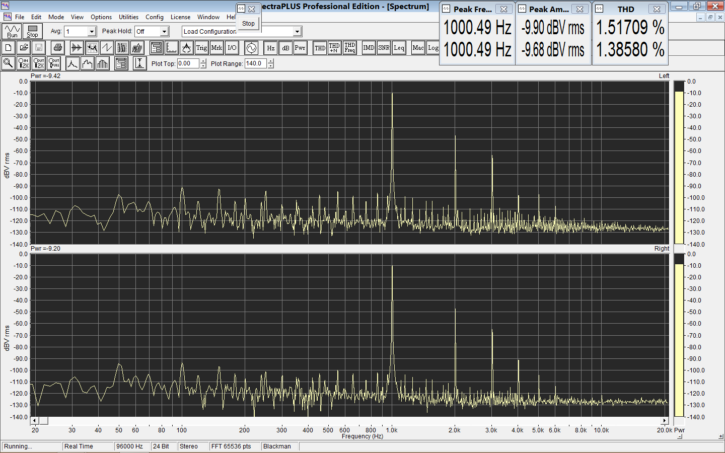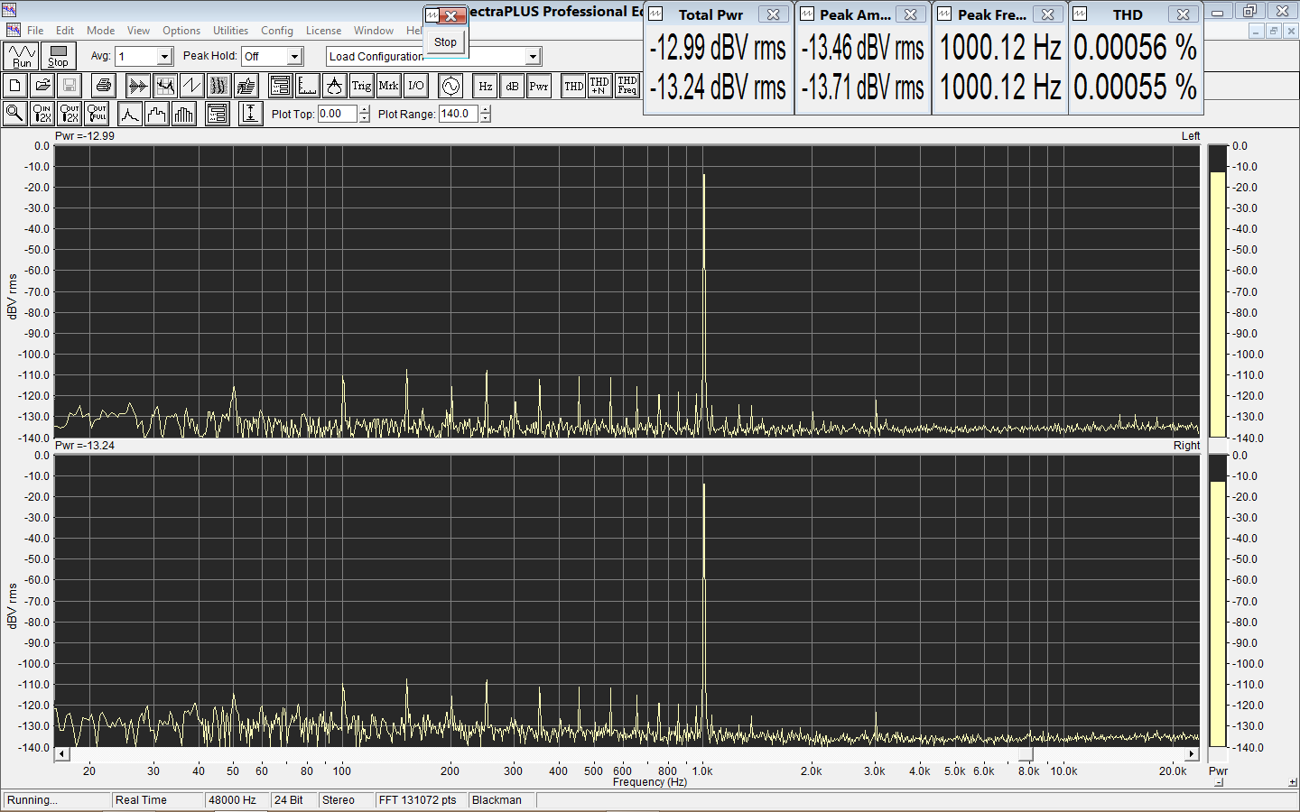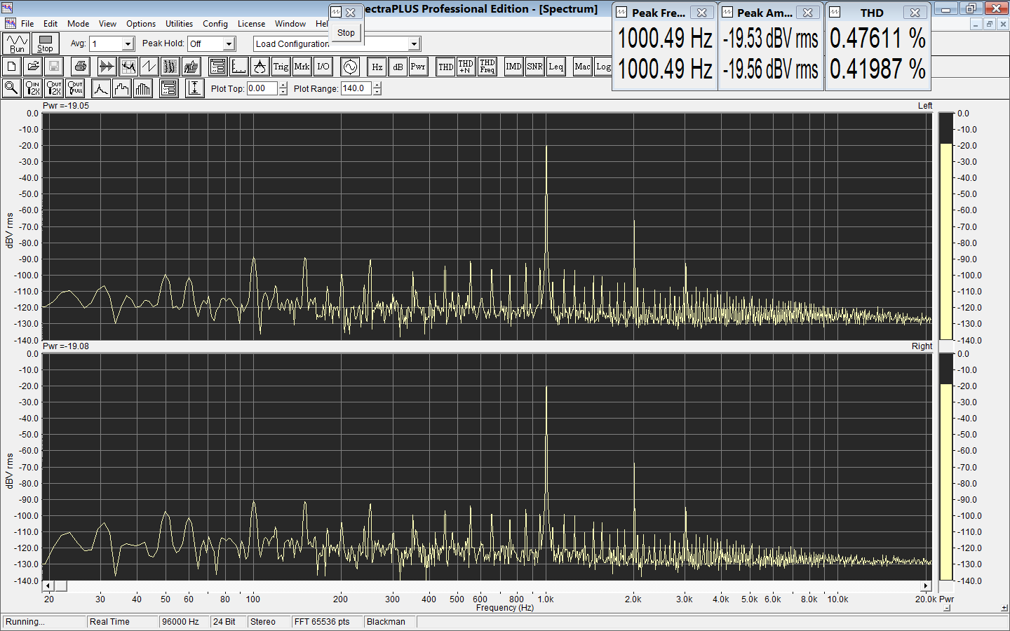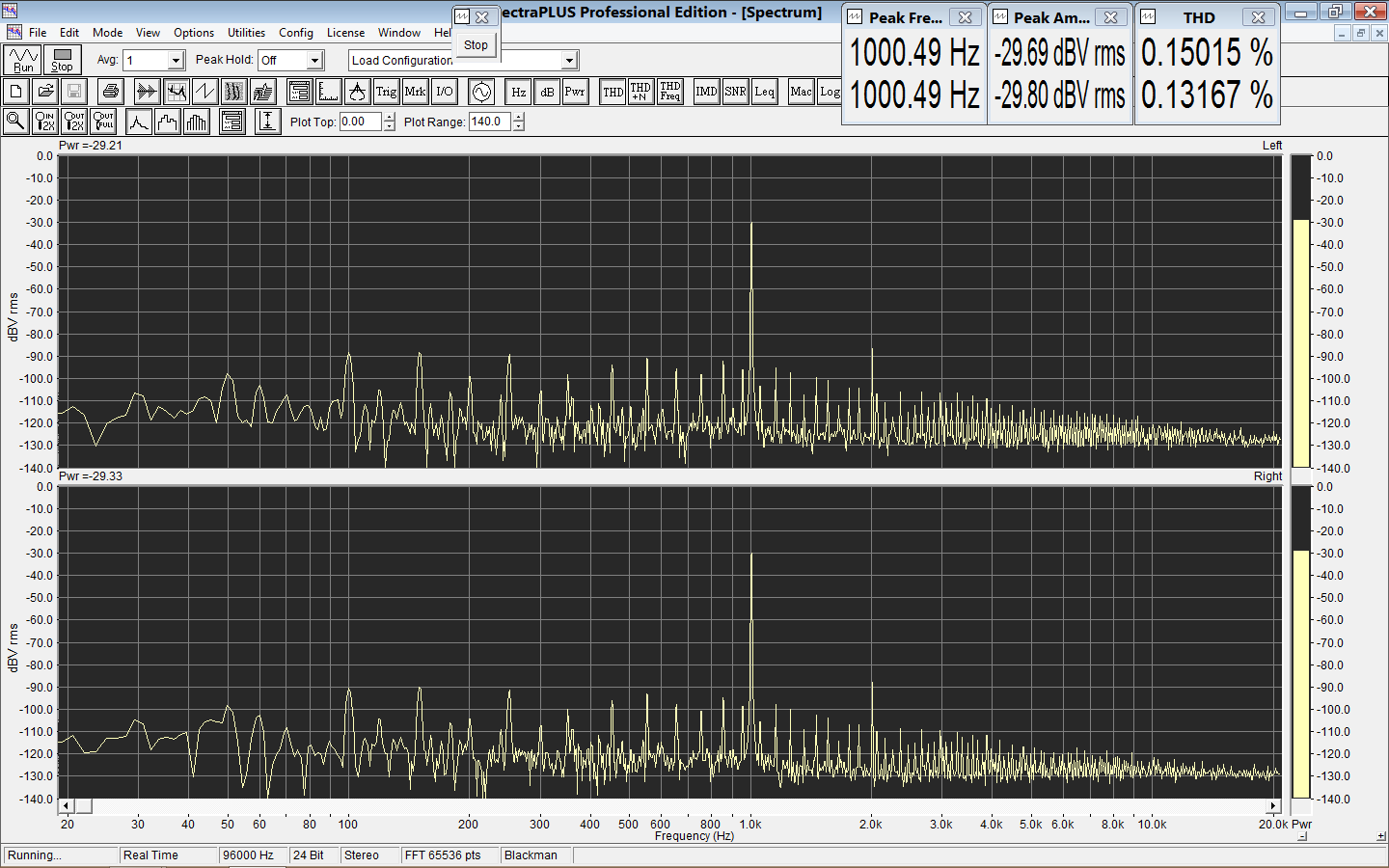 Спектр искажений с разным уровнем сигнала на нагрузке
