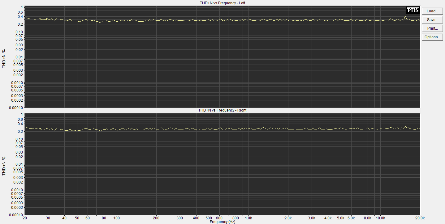 Спектр искажений и уровень искажений от частоты