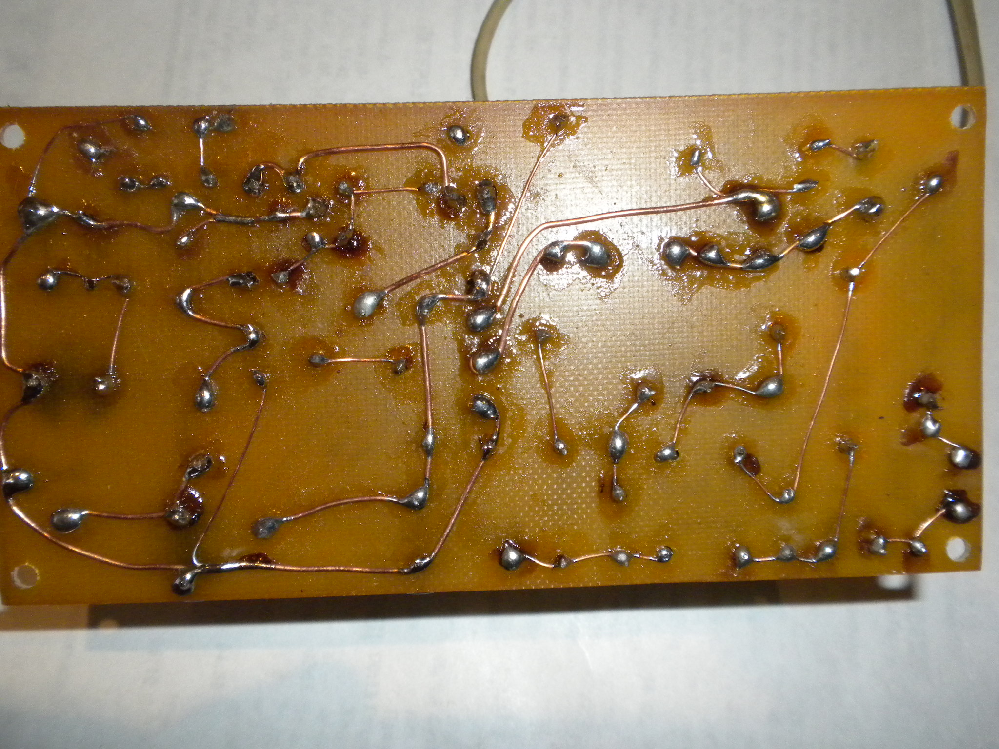 Привет Мафоныч...для гетинаксовых плат нужна химия.чисто канифолью не очень удобно.а вот лак хватает олово мнгновенно,дорожки целые всегда остаются...поищу,попробую...спаси Бог