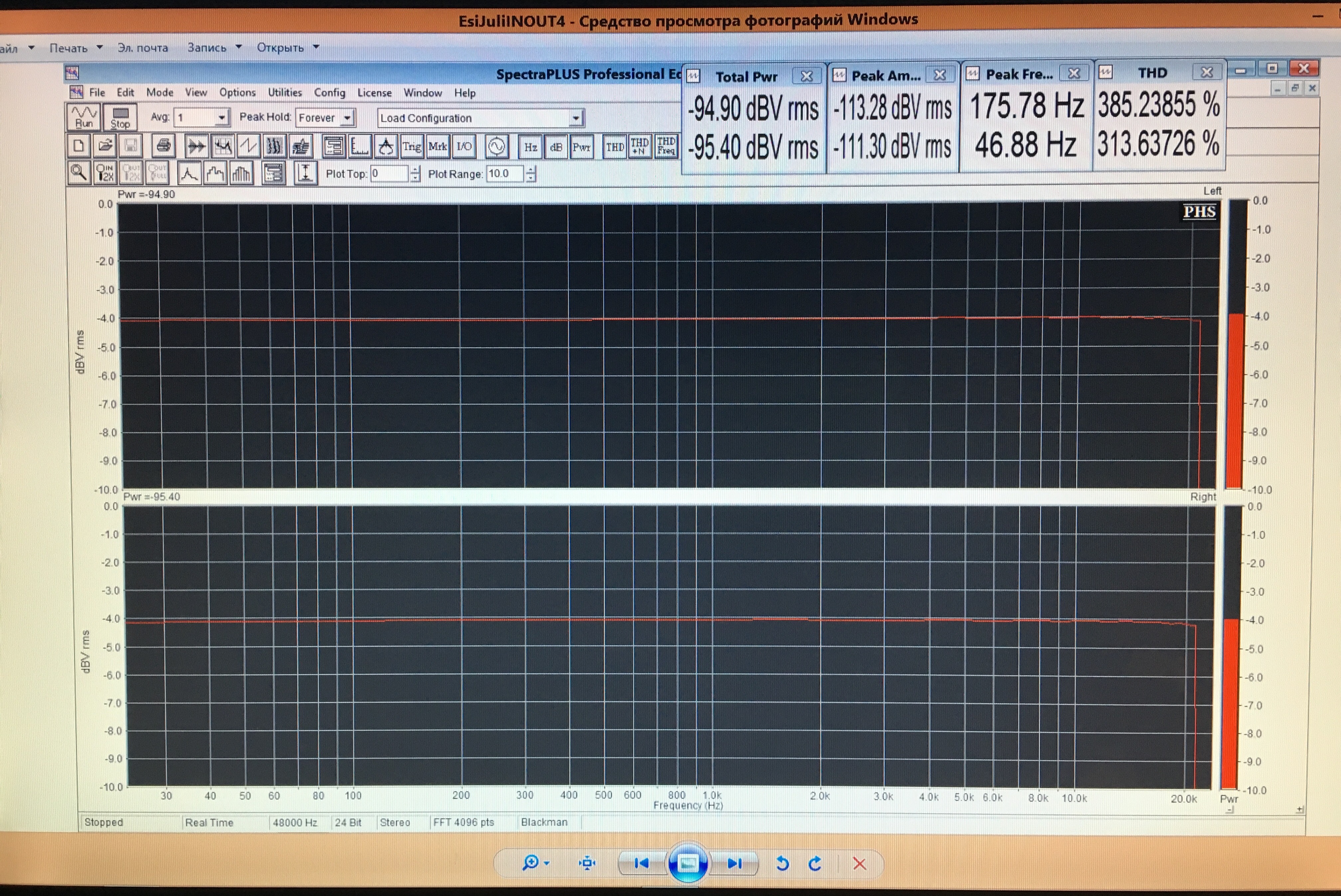 Мне просто неудобно каждый раз менять настройки. И я тебе писал уже об этом сто раз. При изменении движков Виндоус сильно меняется уровень сигнала и подгонять масштаб к 1дБ/дел занимает много времени. При ДД в 140дБ никаких манипуляций с экраном делать не надо, все изменения происходят не вылетая за экран - как на ладони. И если что-то серьезно меняется - все прекрасно видно в этом масштабе. Изменять масштаб можно вбивая мин. и макс. значение амплитуды вручную, и с помощью эл. лупы (мышью) и с помощью горячих клавиш и с помощью специальных кнопок. В спектралабе есть даже кнопка авт. привязки.
