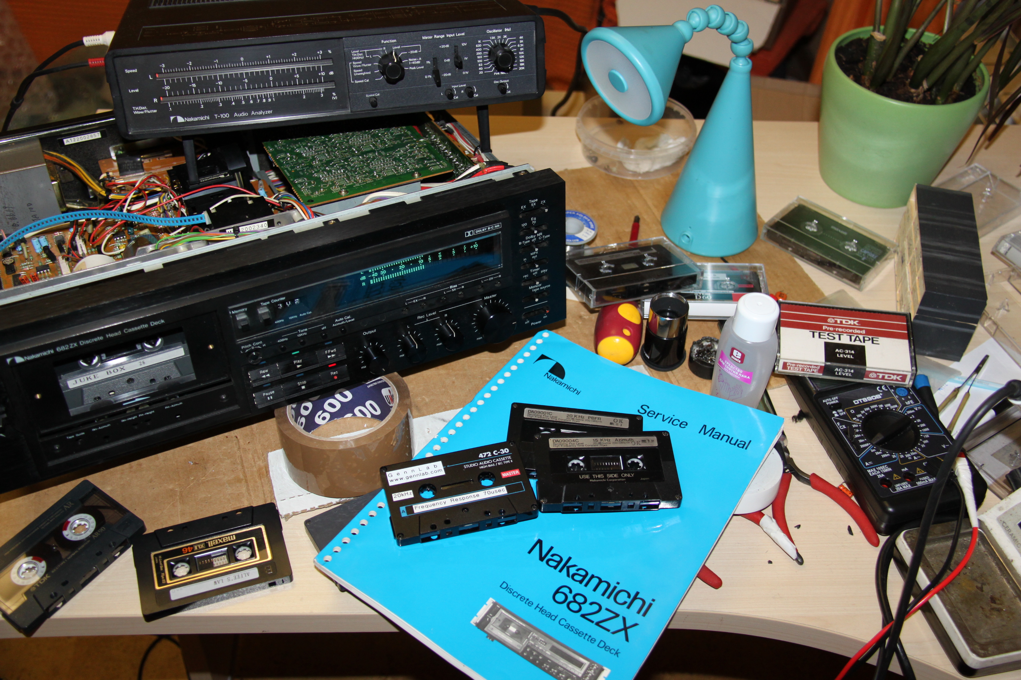 Да так деки не совсем забросил, вот сегодня с 682ZX позанимался немного. Лежала у меня с Японии - естественно в обычном ее состоянии. ЛПМ уже давно у нее перебрал, а собрать поднастроить времени не было. Вот тут дал ей 20kHz на металле - пишет однако. От 15 kHZ уши в наушниках звенят, слышу эту частоту "как младенец", 20 кHz на уровне ощущений при в вкл/выкл. Так реально в прошлом году с генератором проверял где-то 17-17,5 kHZ но надо уровень давать - !! Время появилось - неделю буду хаэндовские "хвосты" подгребать. Надо цапы разные отслушать с транспортами и кабелями, что-то себе оставить, что -то уже друзьям обещал и т.п. Если получиться TEAC Z 6000 сделаю. Вообщем дел навалом.