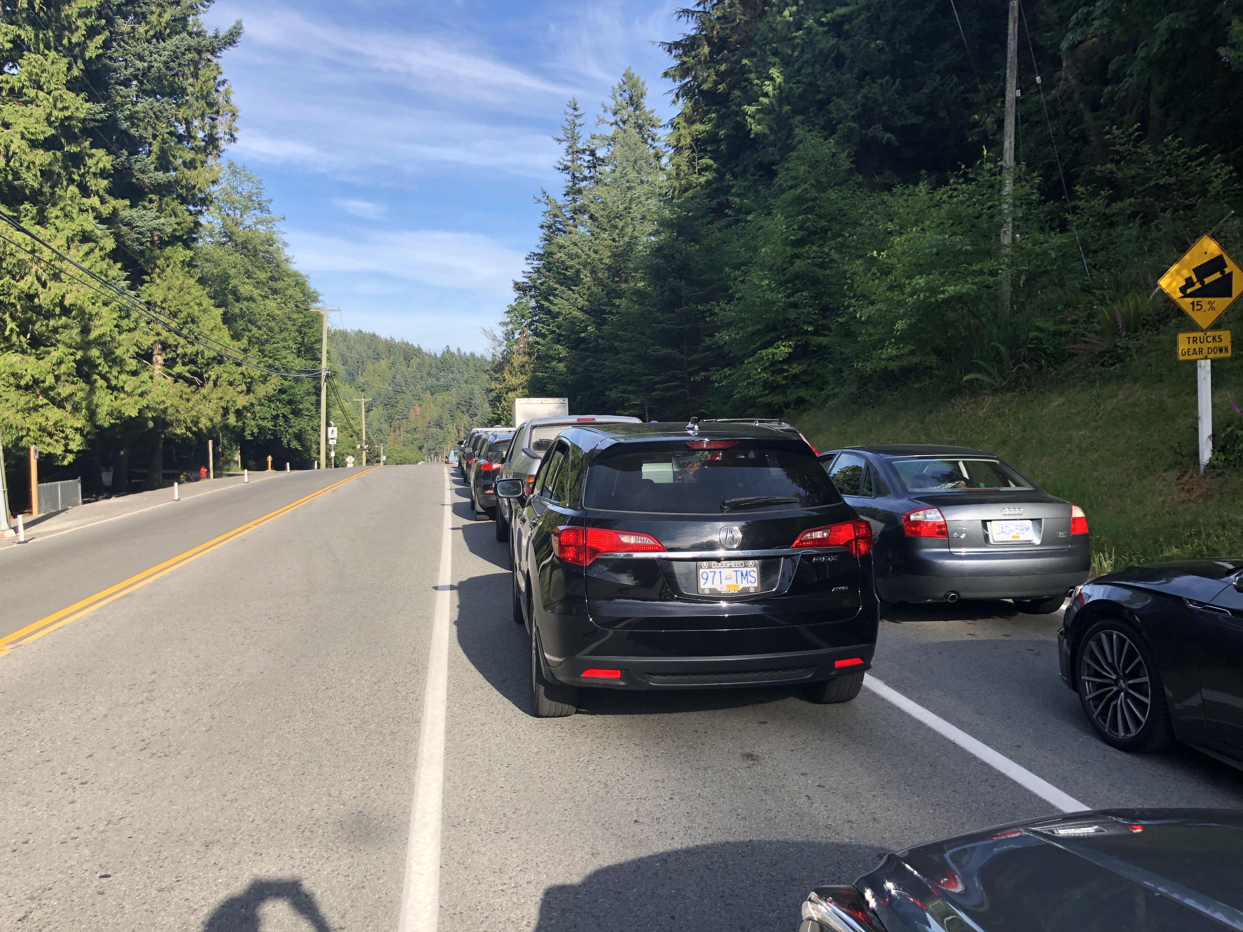 Вот опять в обратную дорогу очередь на паром начинается за городом |