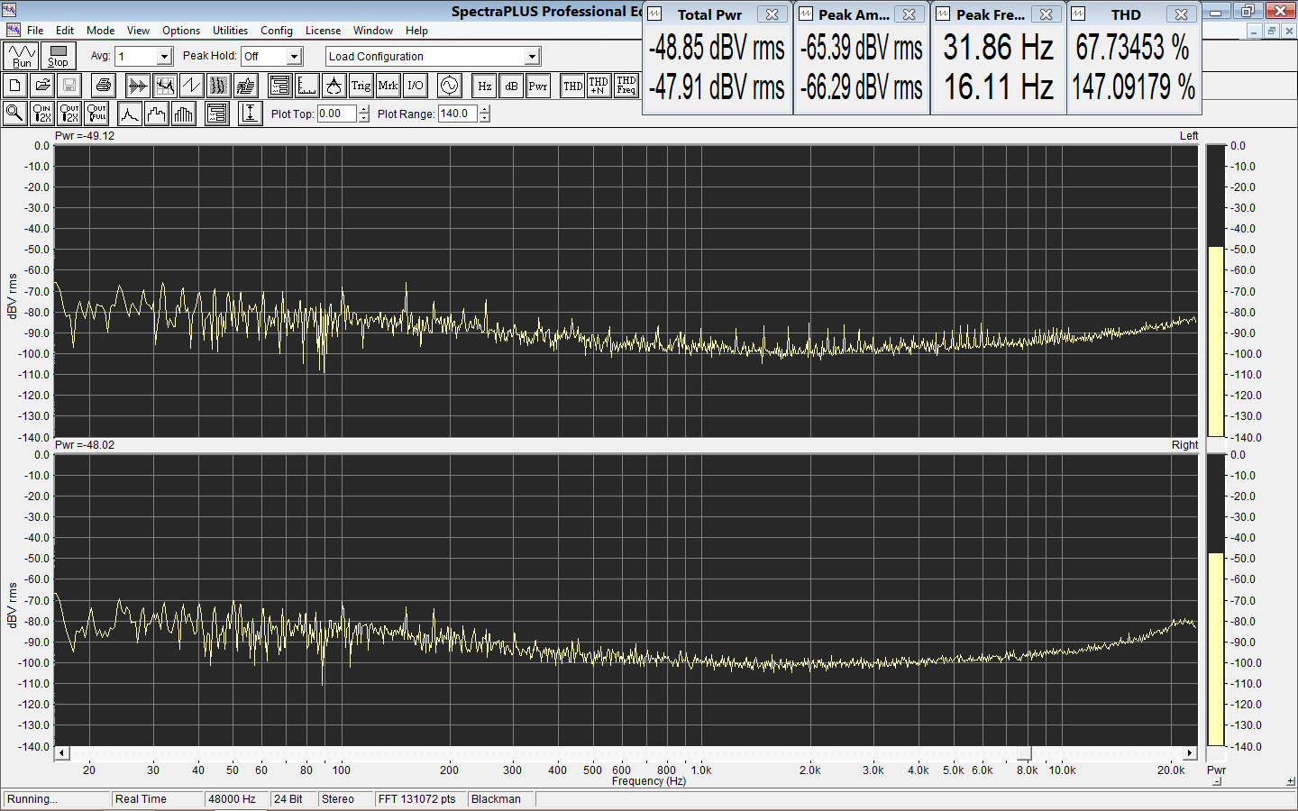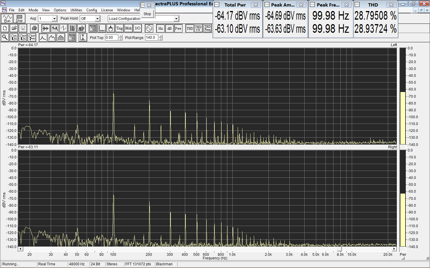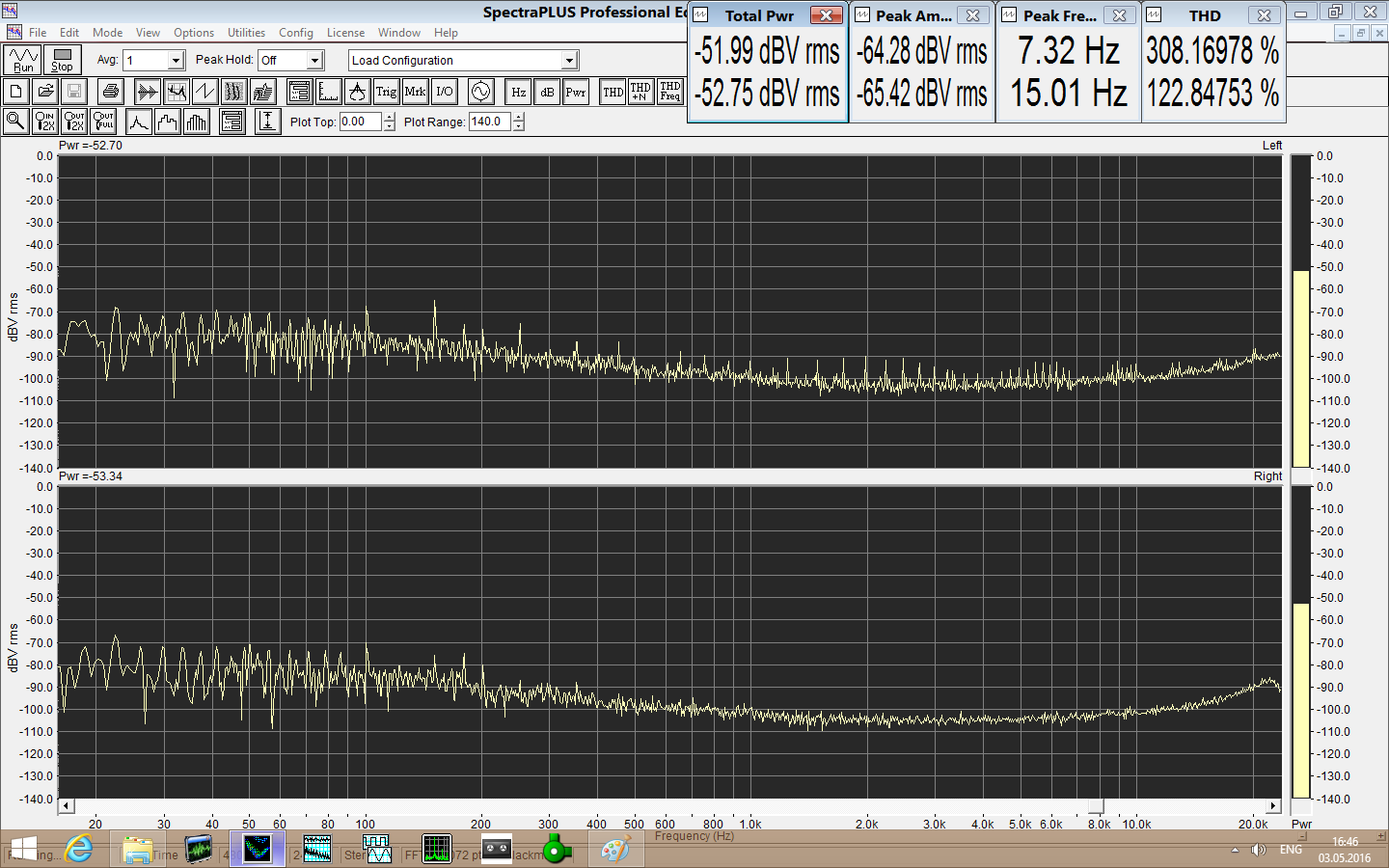 1. Спектр на линейном выходе фиксированном 2. Спектр на линейном выходе регулируемом Видно, что после ушного усилителя появляется дикая наводка 100 Гц |