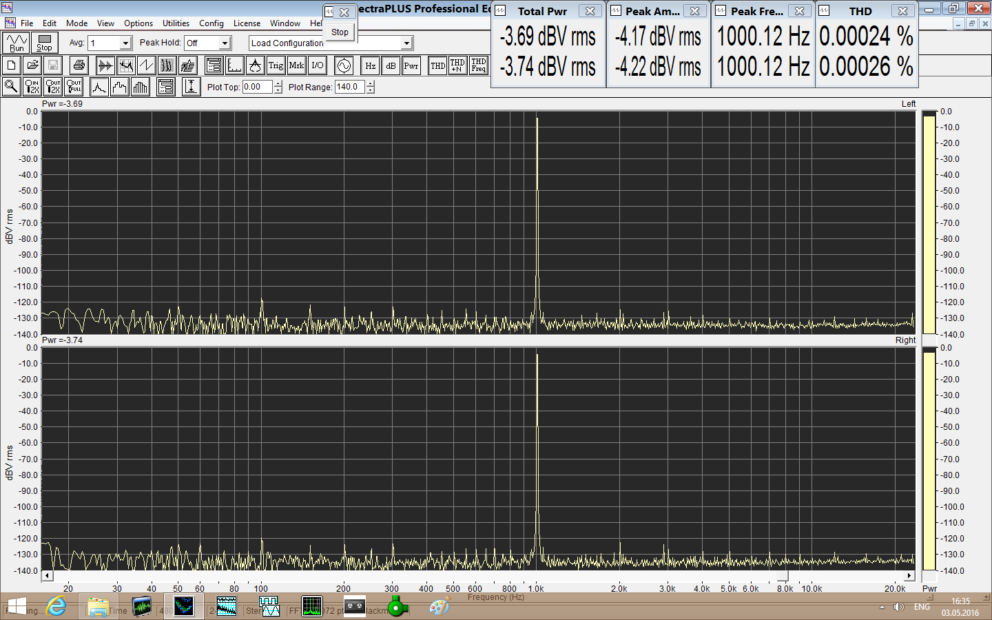 1. Спектр источника (выход карты Esi Juli) 2. Спектр на выходе фиксированном (до ушника) 3. Спектр на выходе регулируемом (после ушника) Видно, что ушник добавляет 0,0015% искажений и гребень сетевого фона |