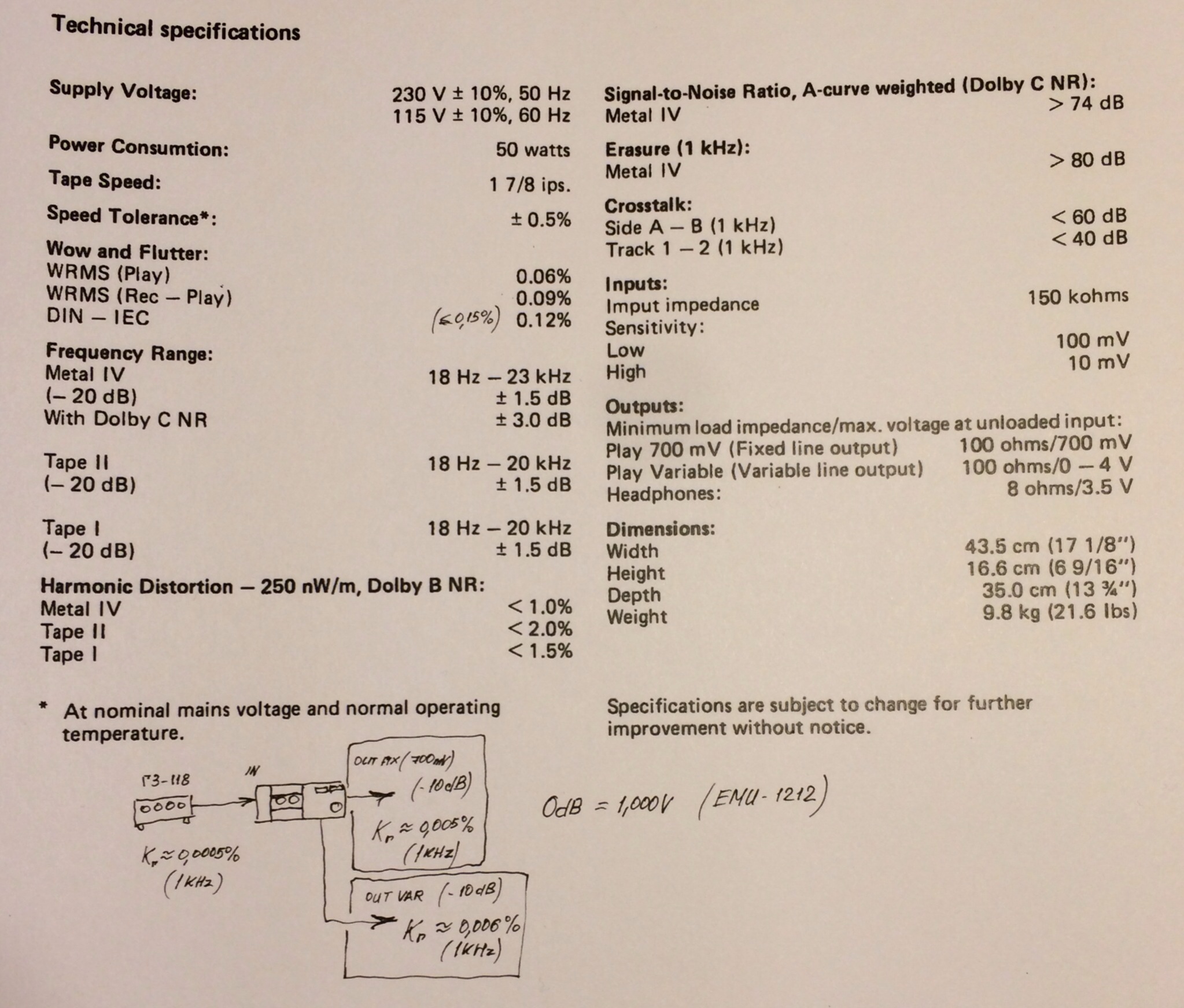 Wow and Flutter: 0.1% Согласно с\м. |