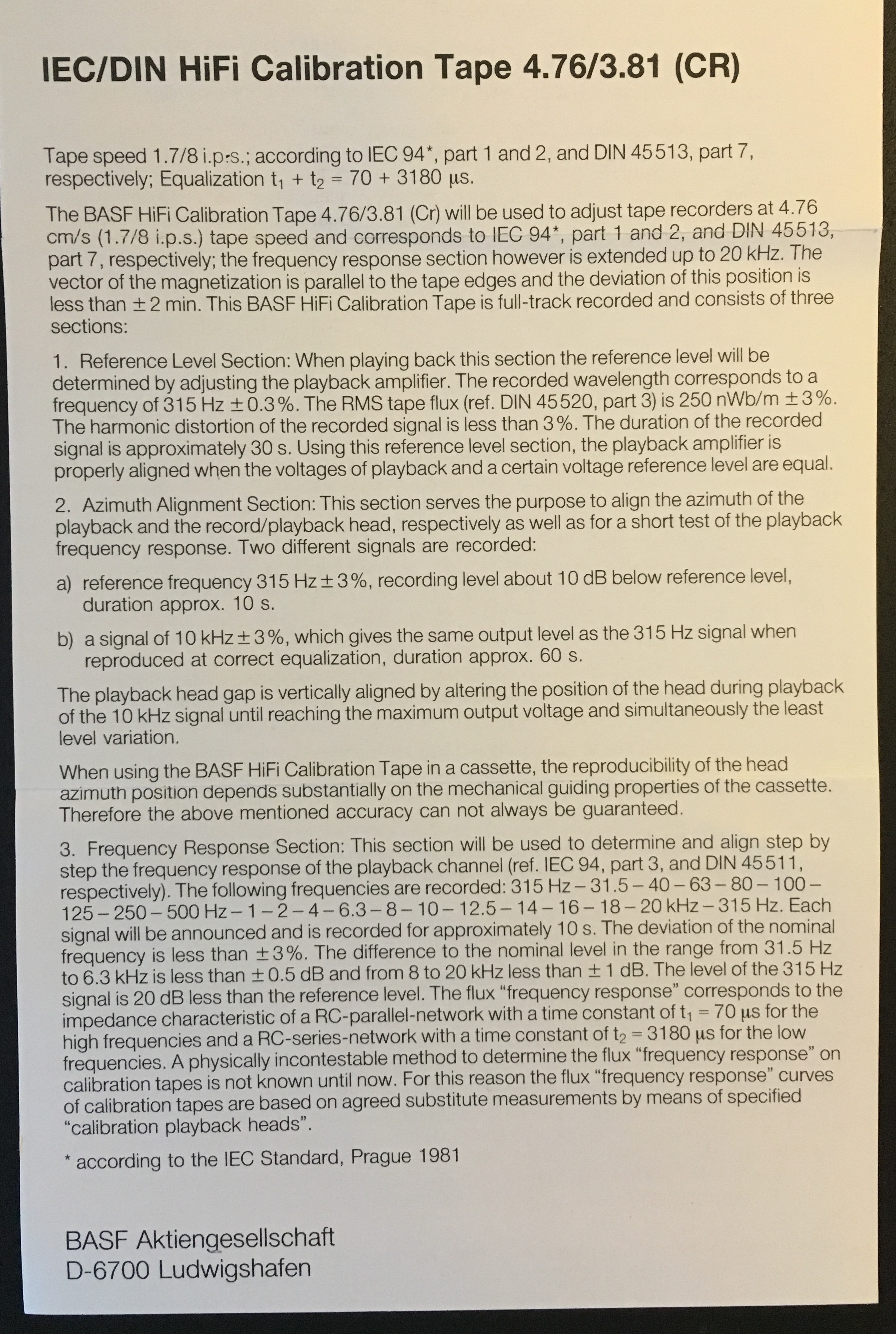BASF 70+3180 uS посчастливилось еще один отловить с расширенным сверху рядом частот до 20 кГц