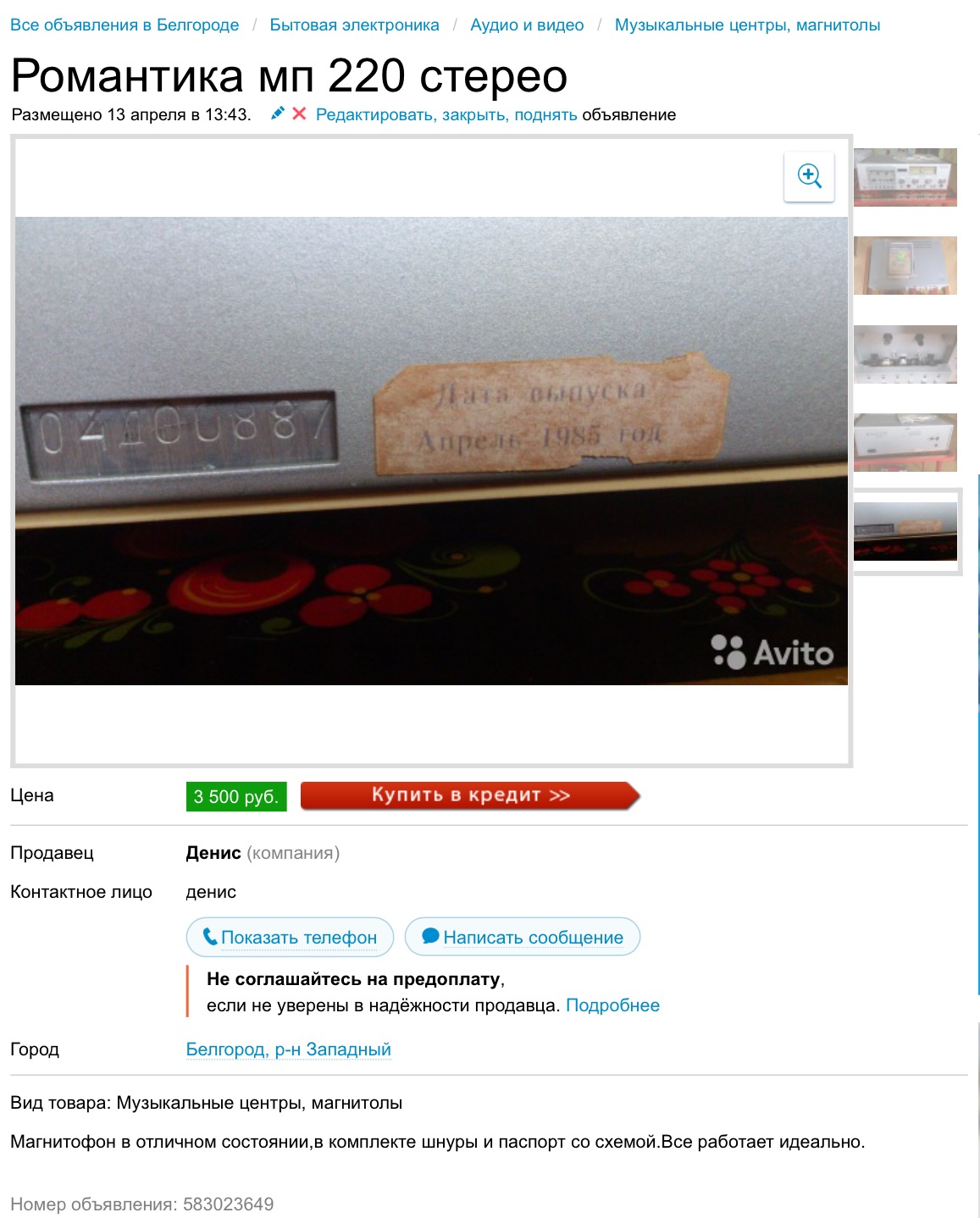 | Магнитофоныч пишет: Мне тоже один фантом нравится - Весна 001 стерео |