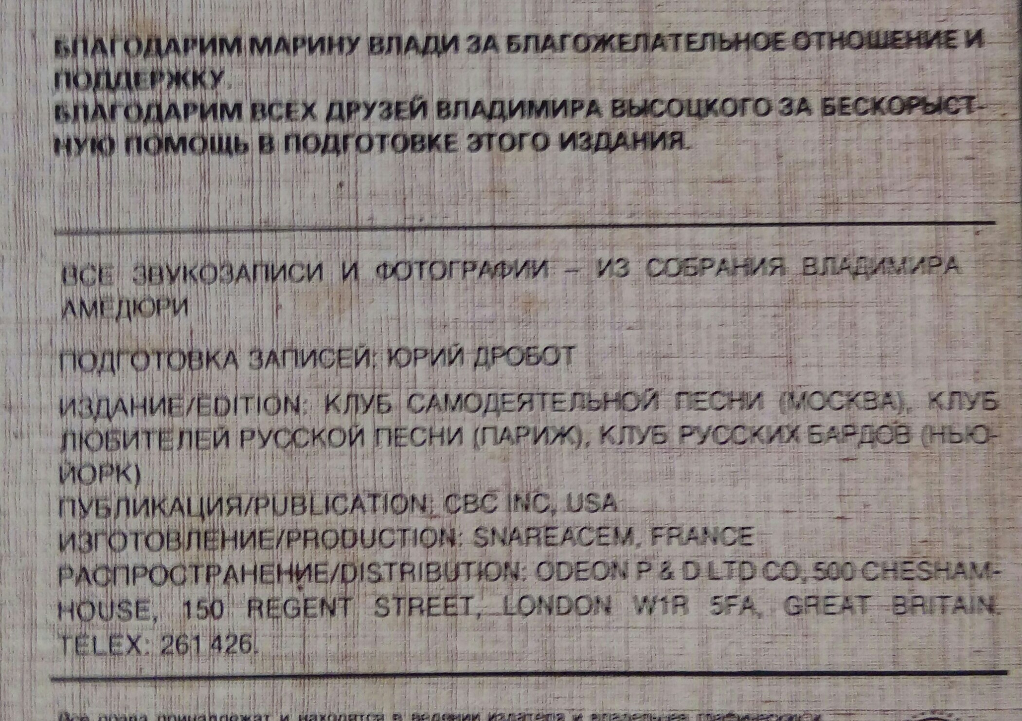 Vladimir Vissotski - OMAGATOKI , 1985