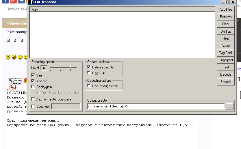 Кодировал во флак ОБА файла - кодером со сжатием 6 .. см скрин Всегда с таким сжатием кодирую.